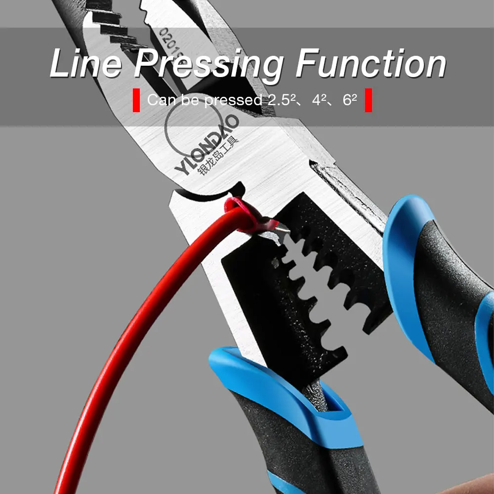 1: Может использоваться в качестве гаечного ключа2: функция линии нажатия: может быть pressed2.5, 4, 6, 3: функция зачистки: пилинг 1,5, 2,5, 4, 6, 84: твердое сцепление: Зажимная головка может держать цементный гвозди, может использоваться в качестве зажима насоса5: функция стрижки: может отрезать 1 мм и 3 мм стальной трос 3-дюймовых гвоздей6: может быть скручен прямой провод, тройной провод, чем обычный зажим более плотный7: нескользящая ручка из ПВХ