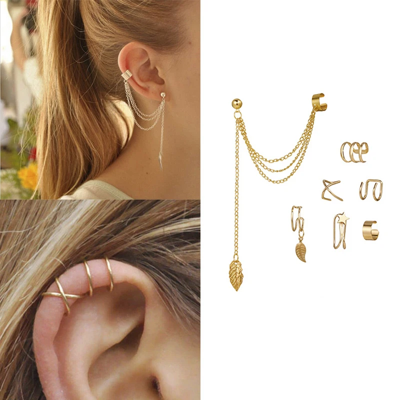 Каффы для ушей женские, 15 шт., 2021, без имитации пирсинга, серьги...