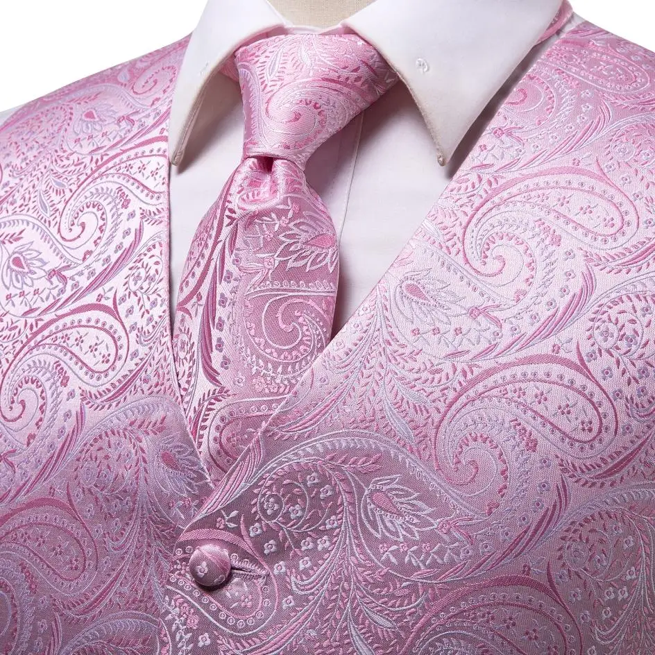 Привет-галстук Шелковый мужской костюм жилеты розовый Пейсли 4 шт т...