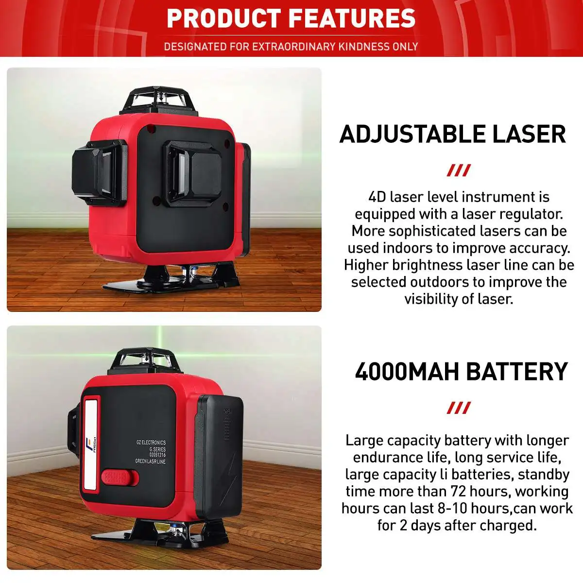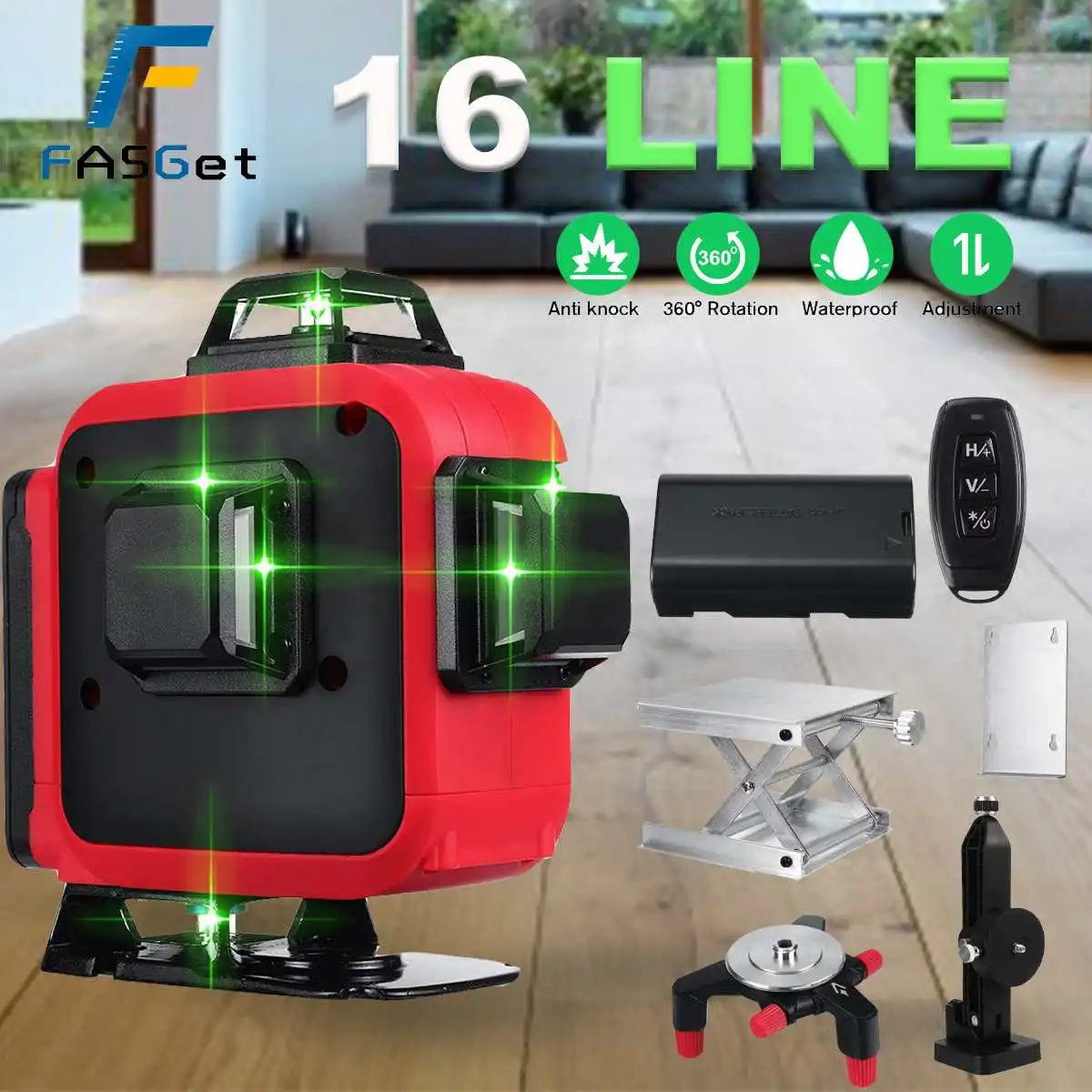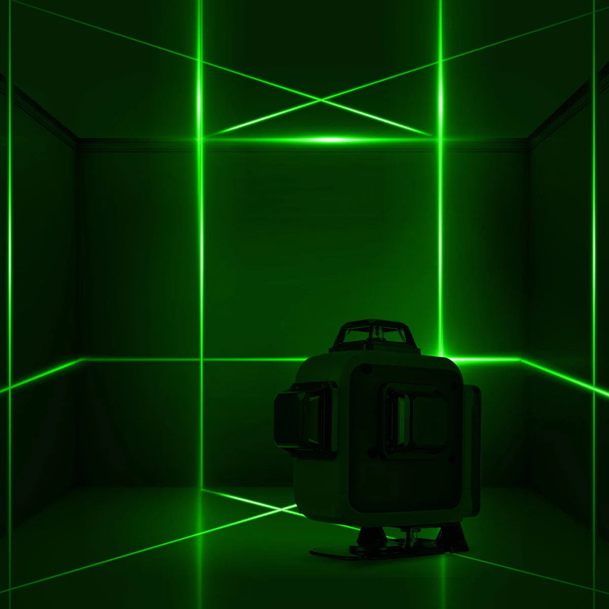16-линейный 4D зеленый лазерный уровень, Горизонтальные и вертикальные перекрестные линии с автоматическим самовыравниванием, в помещении и на улице