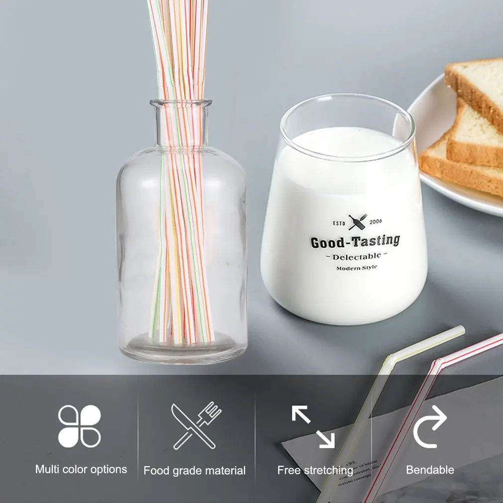 100 шт., одноразовые гибкие пластиковые соломы для вечерние шения чая, кофе