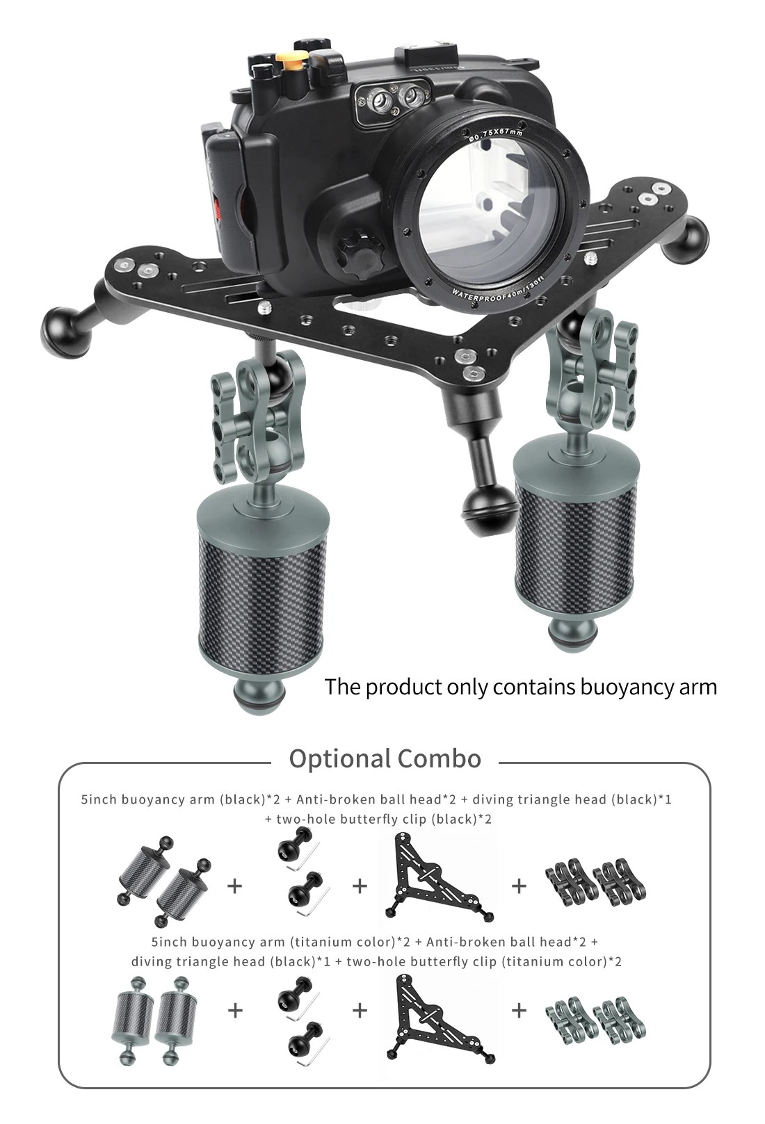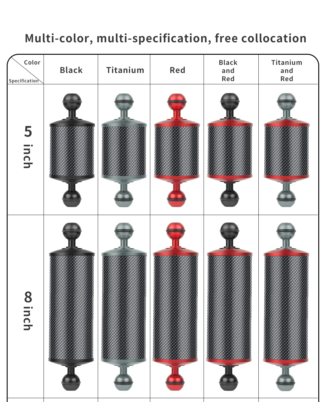 Этот Улучшенный рычаг изготовлен из углеродного волокна, что делает его супер-светильник для путешествий и очень гладким. Плавающая рукоятка, как правило, используется для подводного плавания, чтобы увеличить плавучесть, если вы носите тяжелое снаряжение. Прикрепив эту руку к подводной фотографии оборудования, вы можете более легко манипулировать своим подводным корпусом и легко сделать несколько великолепных фотографий и видео. Ныряльщик может выбрать правильные плавучие рукоятки, чтобы уменьшить вес оборудования для дайвинга под водой, и добавить другие аксессуары для дайвинга на мяче плавучей руки.