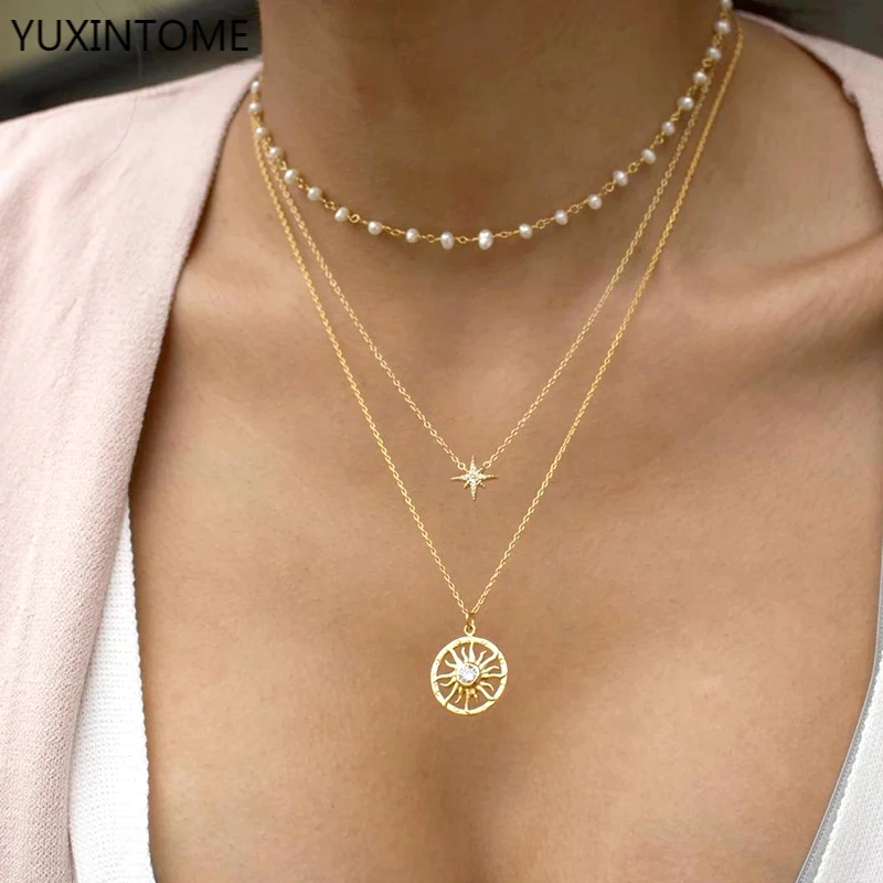Модное ожерелье NEWBUY золотого цвета с подвеской солнце и луна для...