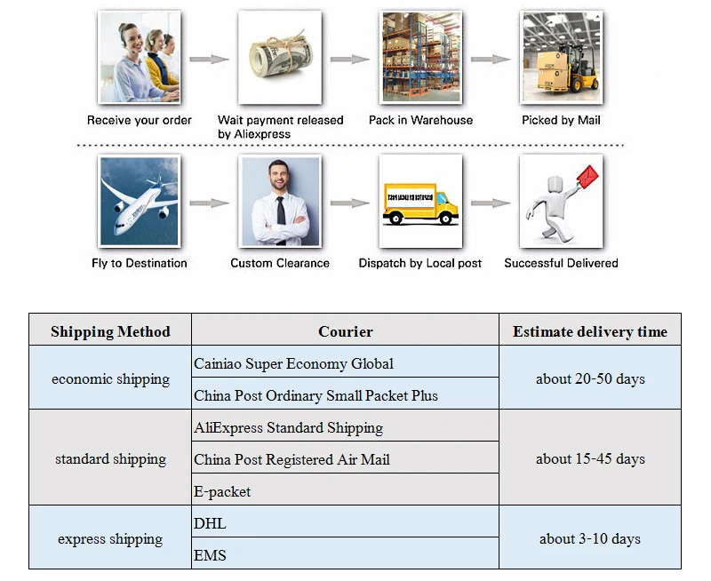 4. Время доставки: обычно занимает около 15-30 рабочих дней после отправки. Но иногда может быть задержка до 30-60 рабочих дней, потому что время доставки может меняться, особенно во время праздничного сезона.