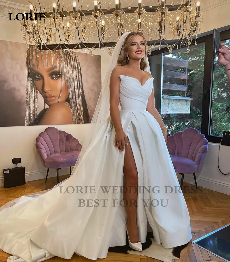 LORIE атласное свадебное платье без бретелек А-силуэт свадебные платья 2022 пикантное с Боковым Разрезом длинным шлейфом Свадебное бальное платье принцессы