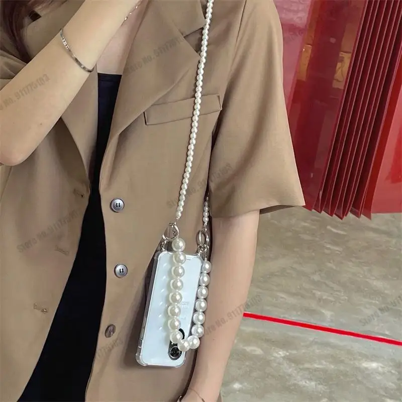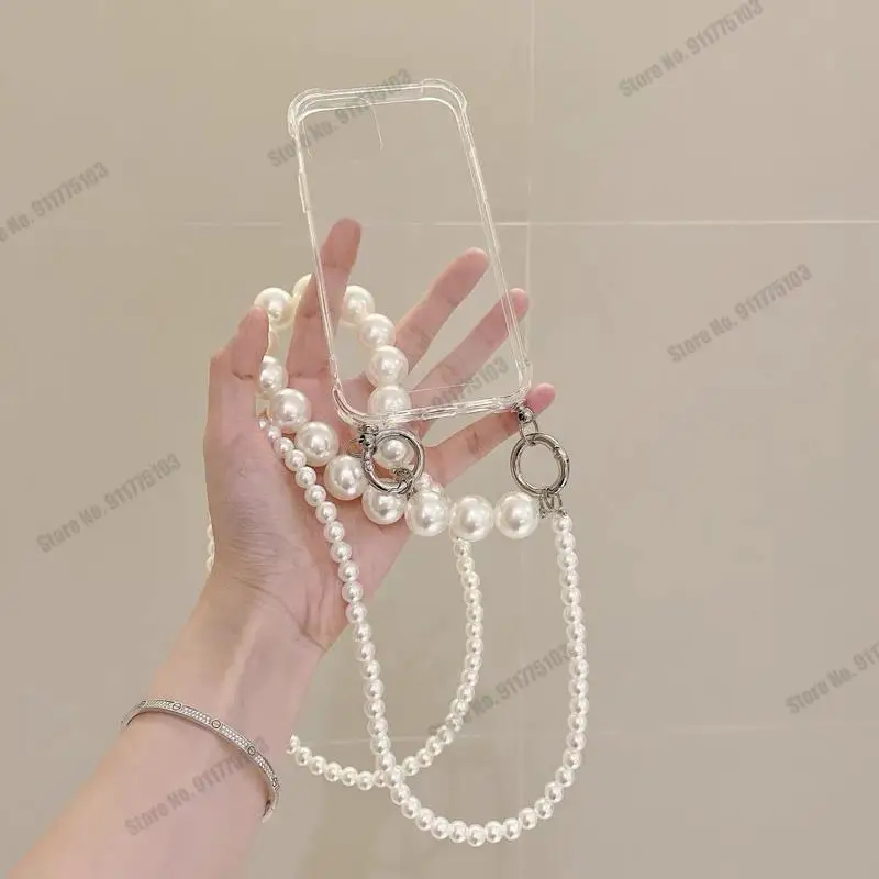 Браслет из больших жемчужин с цепочкойСумка через плечоЧехол для телефона Honor 50 Pro 50SE 30S 9X 30 Pro Plus 20 Lite 9A мягкий прозрачный чехол