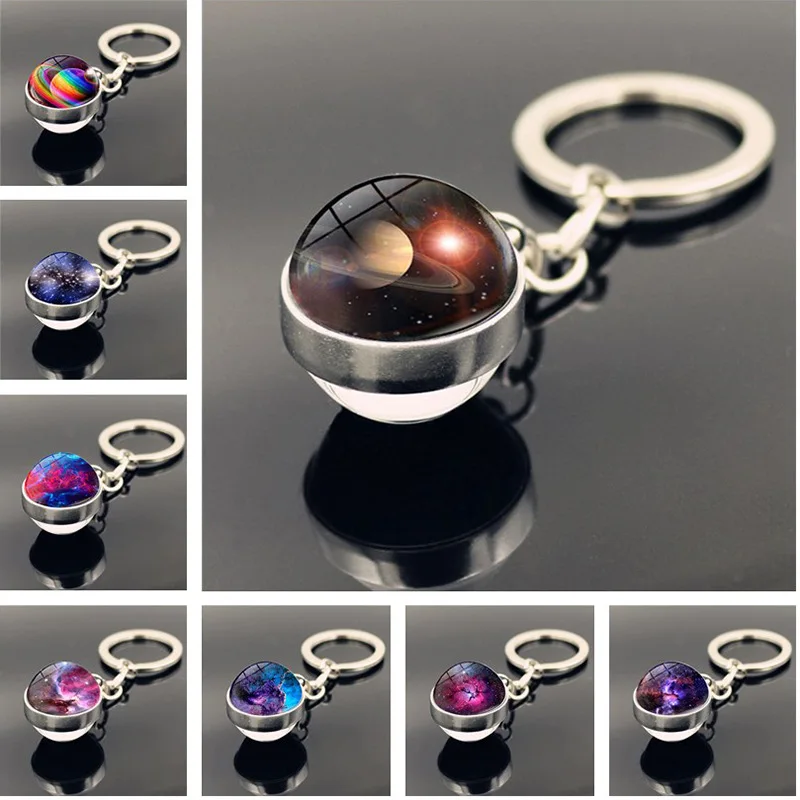 Брелок для ключей Вселенная, двухсторонний кулон в виде планеты, галактики, туманности, хрустальный шар, цепочка для ключей от машины, цепочка для ключей от рюкзака
