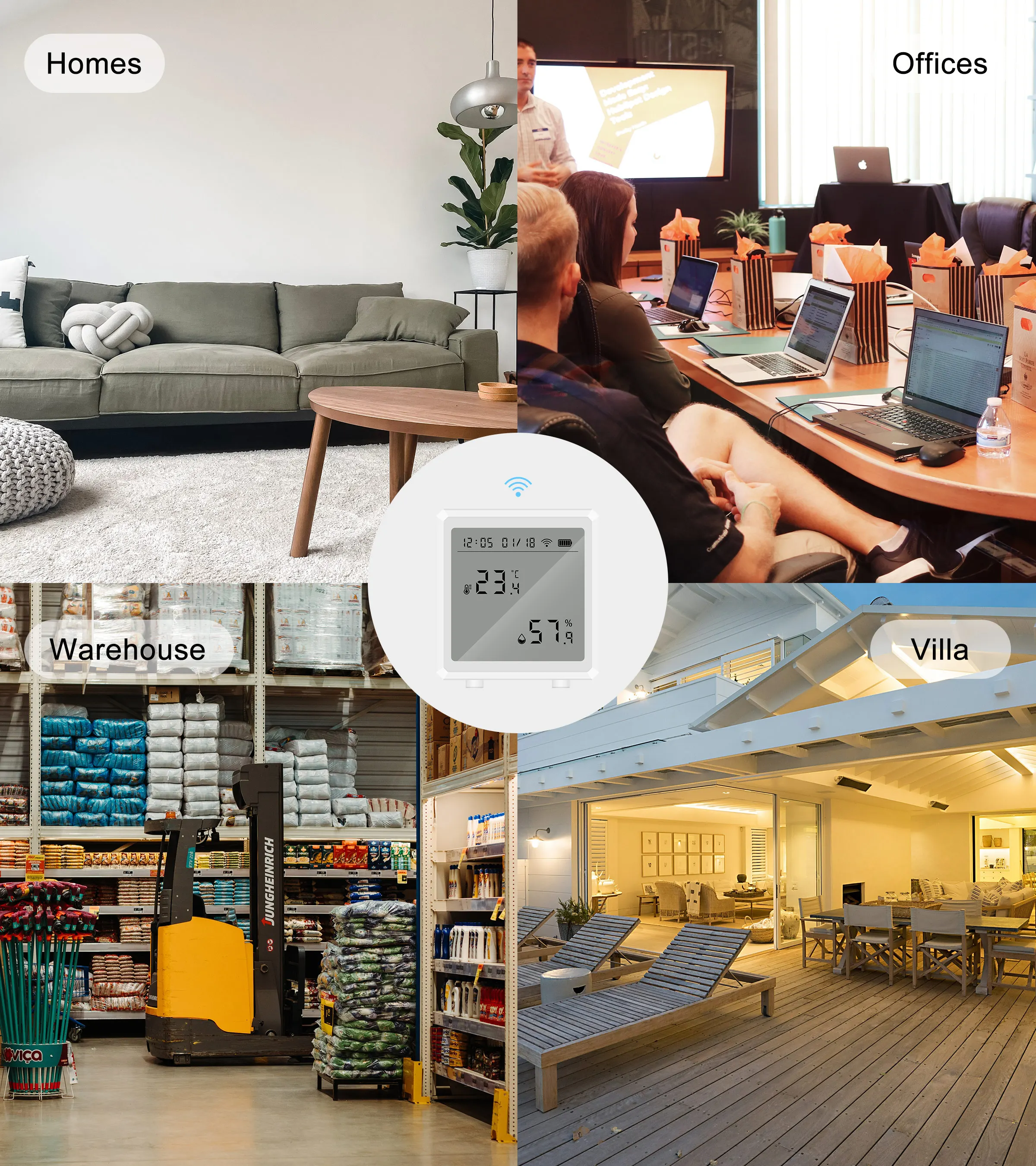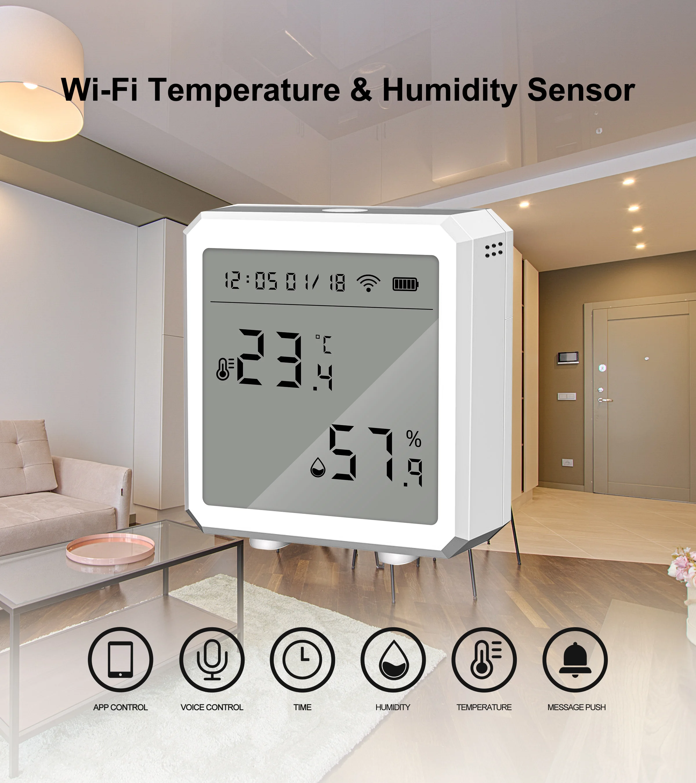 Умный беспроводной термометр Tuya, Wi-Fi датчик температуры и влажности с ЖК-экраном, работает с Alexa Google Home