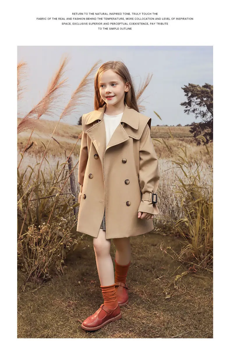 V-TREE, весенне-осенняя ветровка для девочек, хлопковый плащ, одежда, двубортная ветровка, куртка, 2021