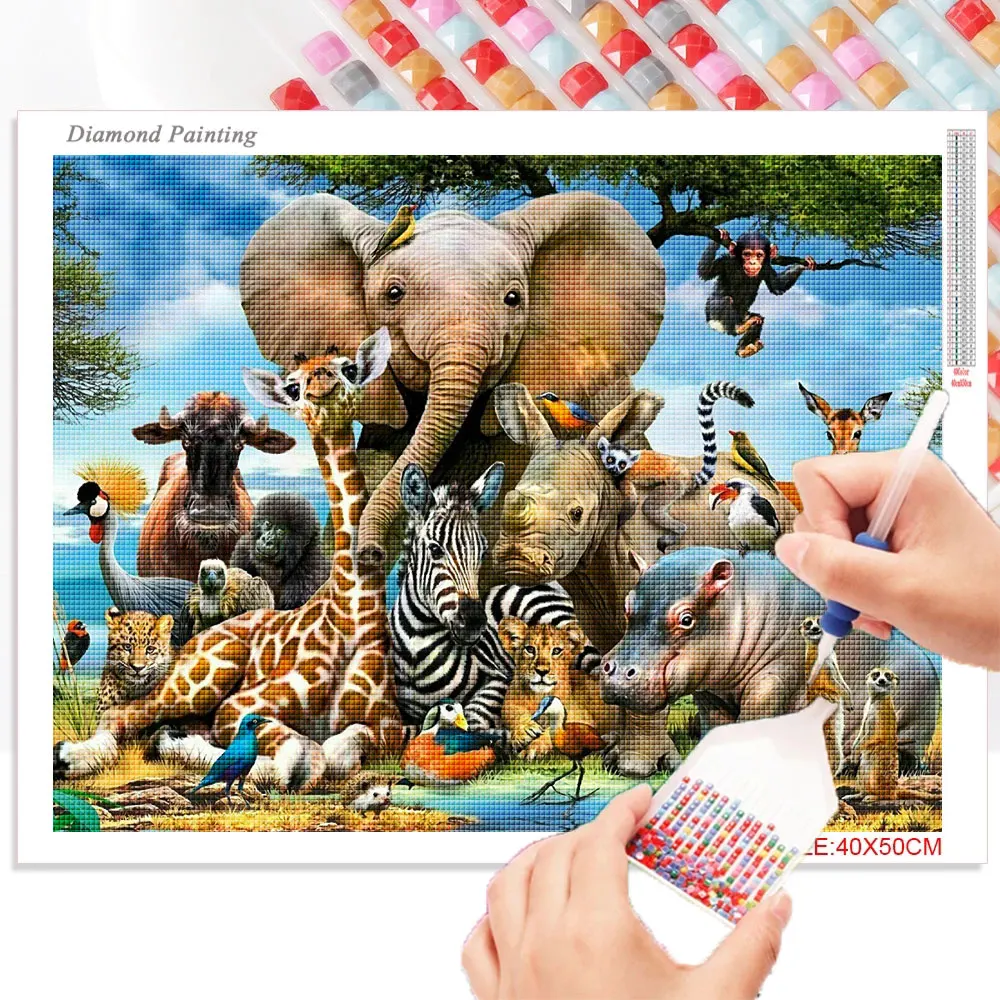 5D алмазная живопись сделай сам, животные, слон, полностью Алмазная мозаика, вышивка крестиком, набор для домашнего декора, Алмазная мозаика