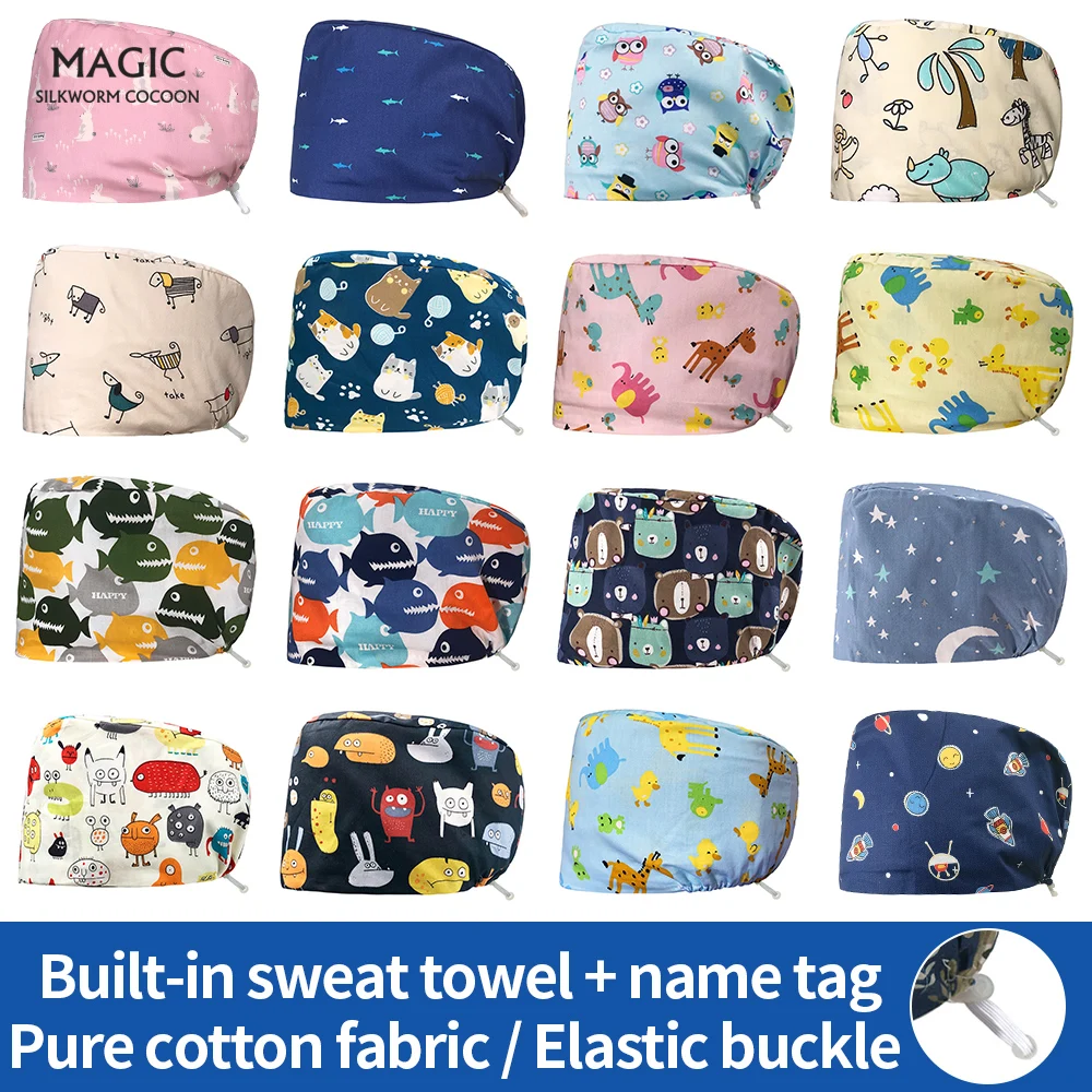 Женская рабочая шляпа для операционной, кепка для ухода за аптекой, докторская шляпа для ухода за домашними животными, хирургическая унисекс шляпа с рисунком животных