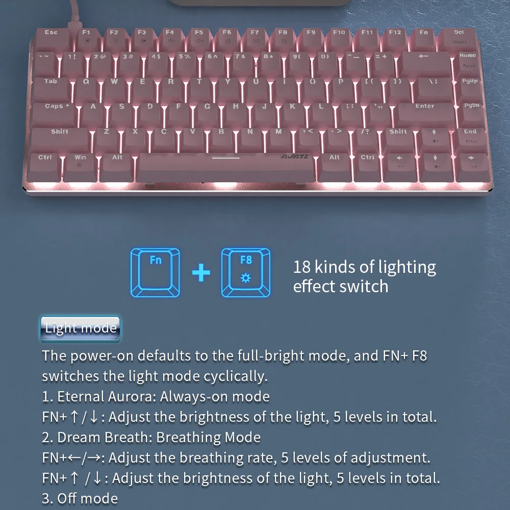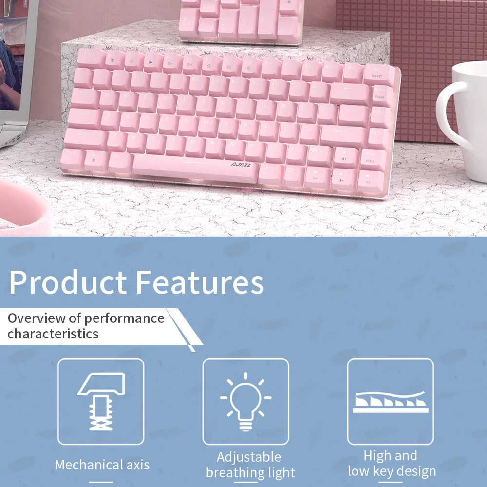 Характеристики механической игровой клавиатуры розового цвета: