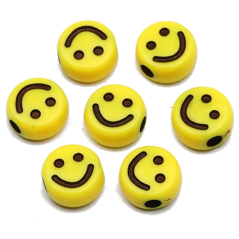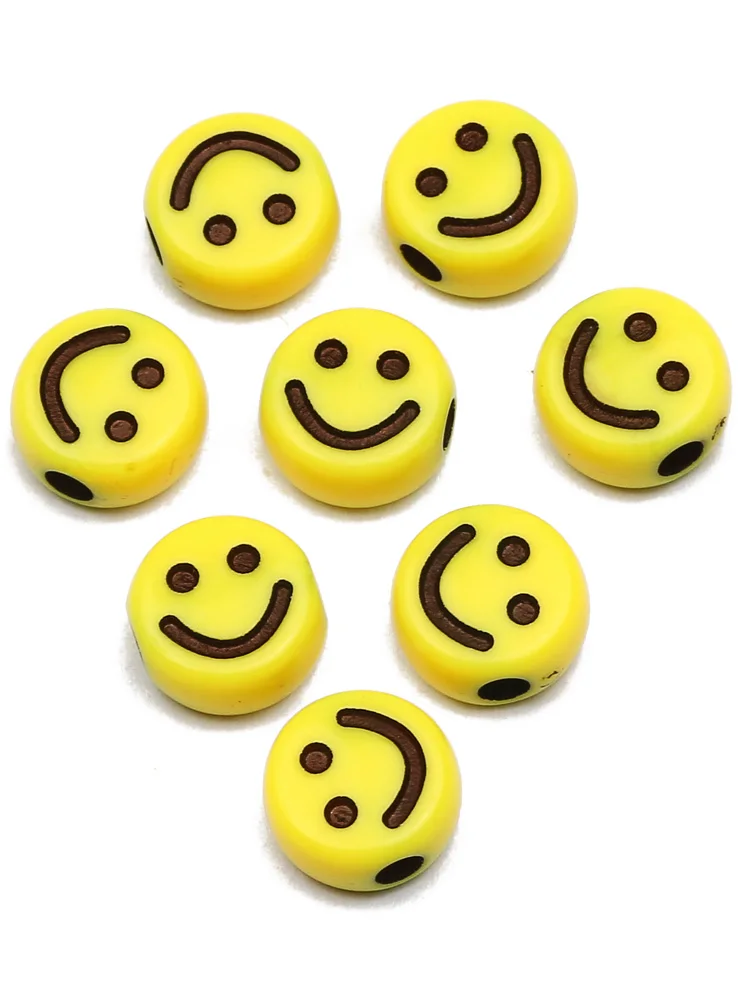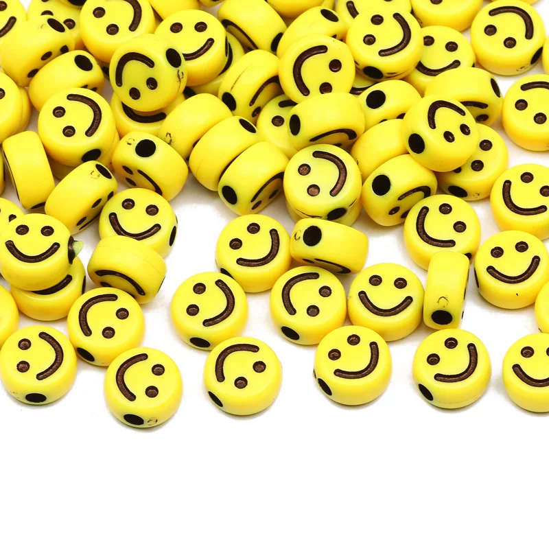 Желтые акриловые Круглые бусины 10x5 мм, смайлики, свободные бусины для изготовления ювелирных изделий сделай сам, аксессуары для браслетов, ожерелий, серег ручной работы