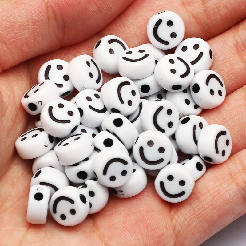 Смешанные акриловые бусины со смайликом, круглые плоские бусины-раз...
