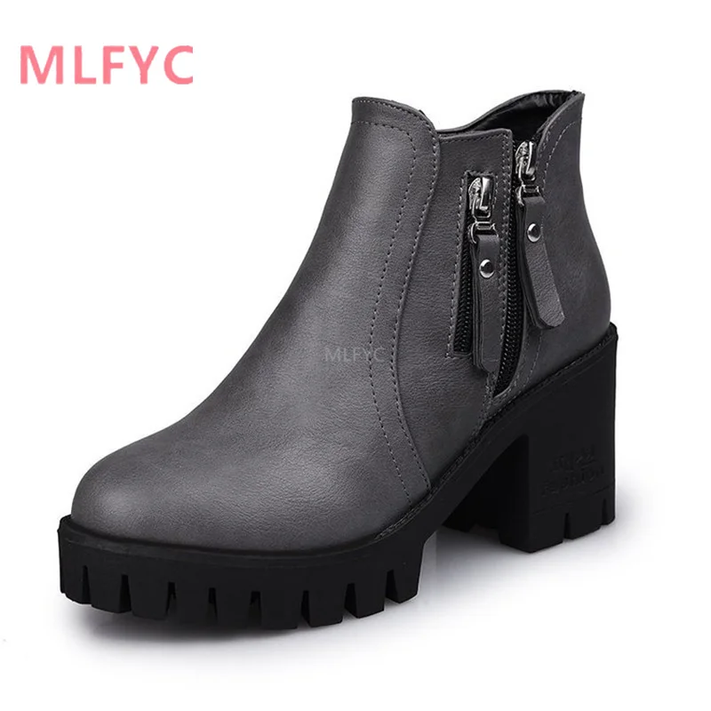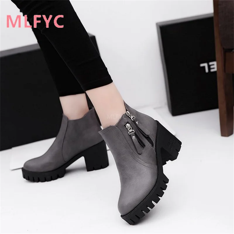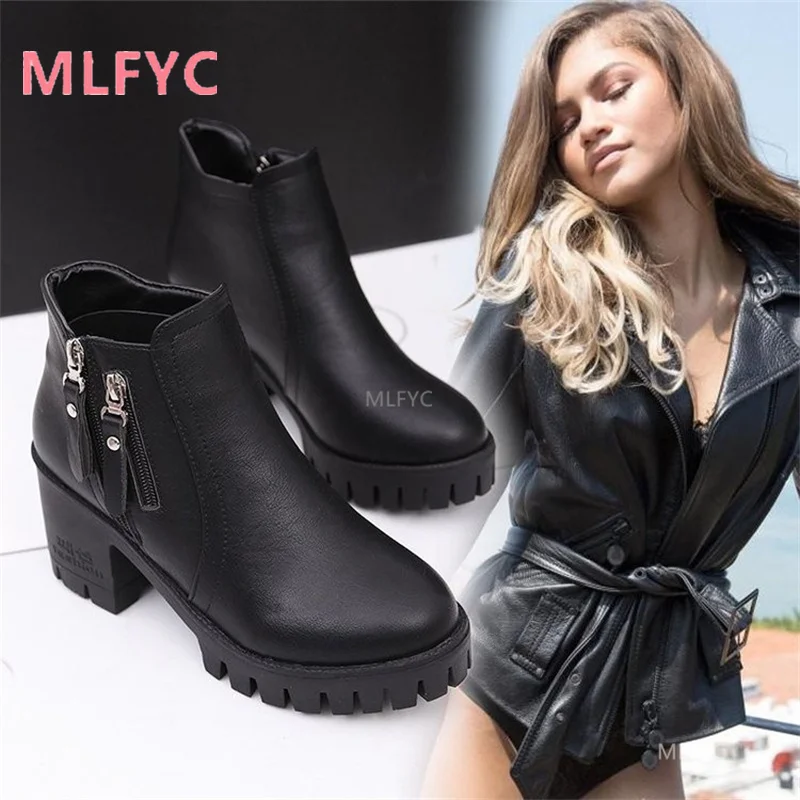 Ботинки-мартинсы женские на среднем каблуке, с круглым носком, на молнии
