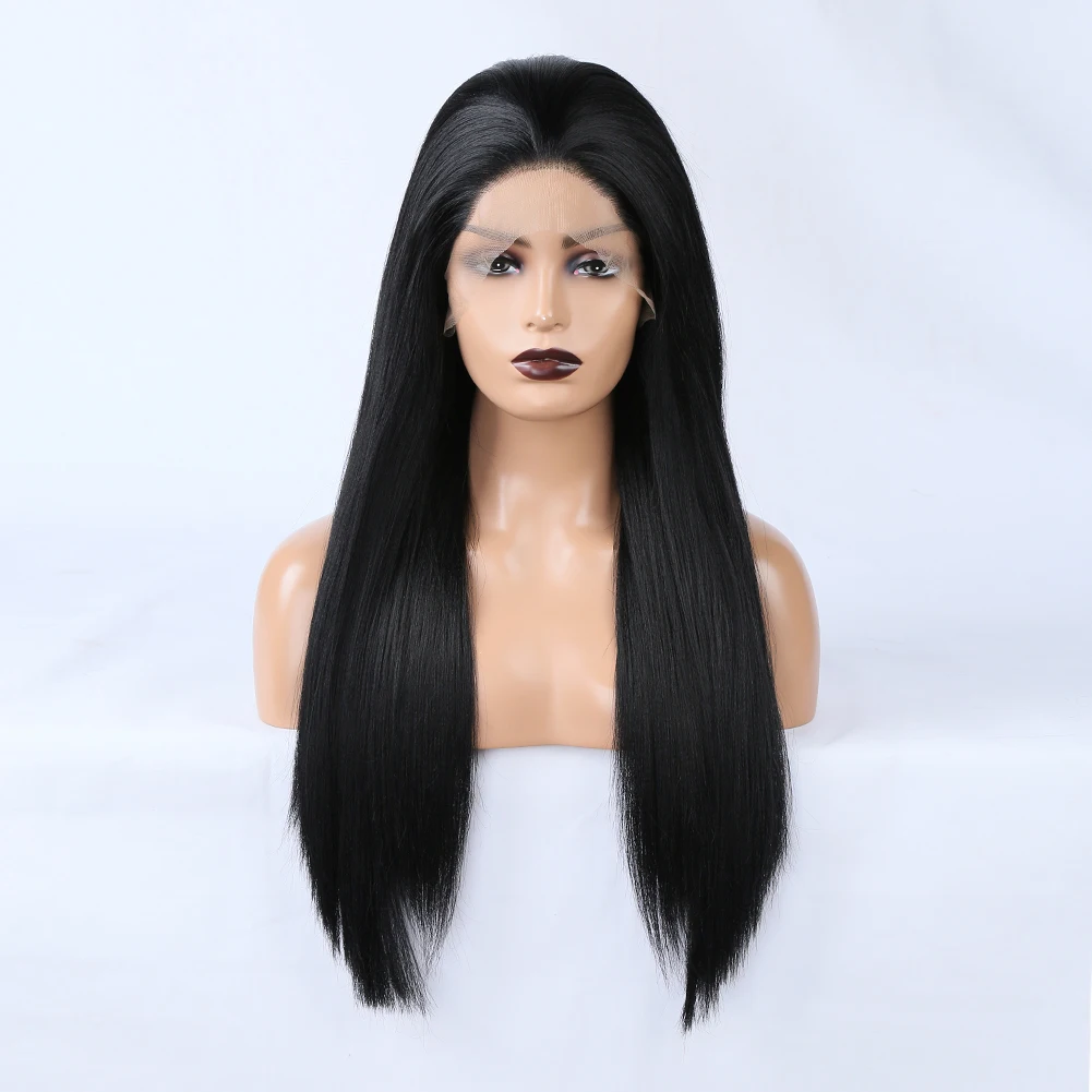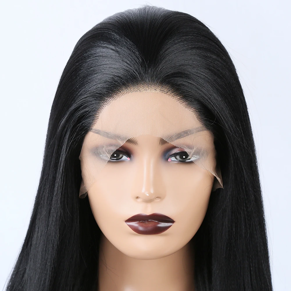 Black Hair Lace Wigs for Women Kinky Straight Wig Synthetic Lace Front Wig High Temperature Fiber Cosplay Wigs Free Part