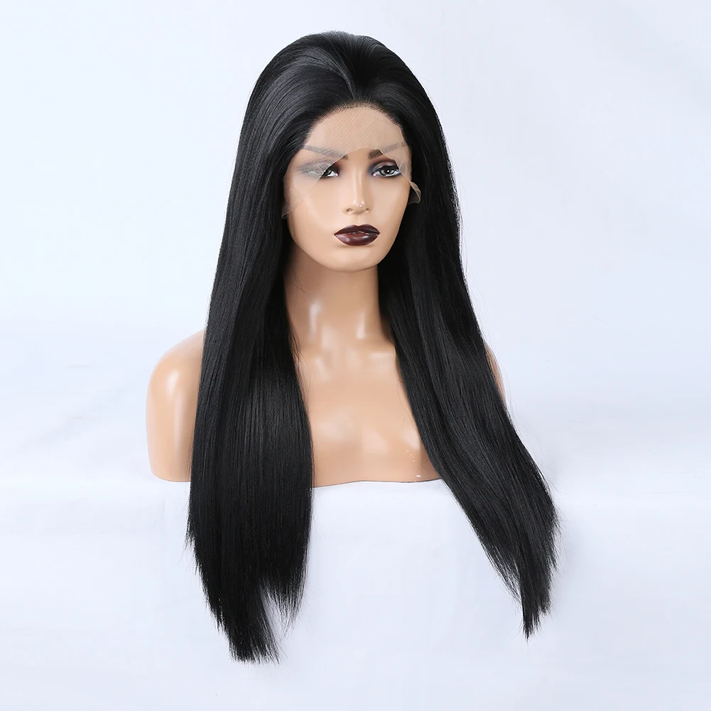 Парики из черных волос на сетке для женщин, курчавые прямые синтетические волосы спереди, парики из термостойкого волокна для косплея, с бесплатной частью