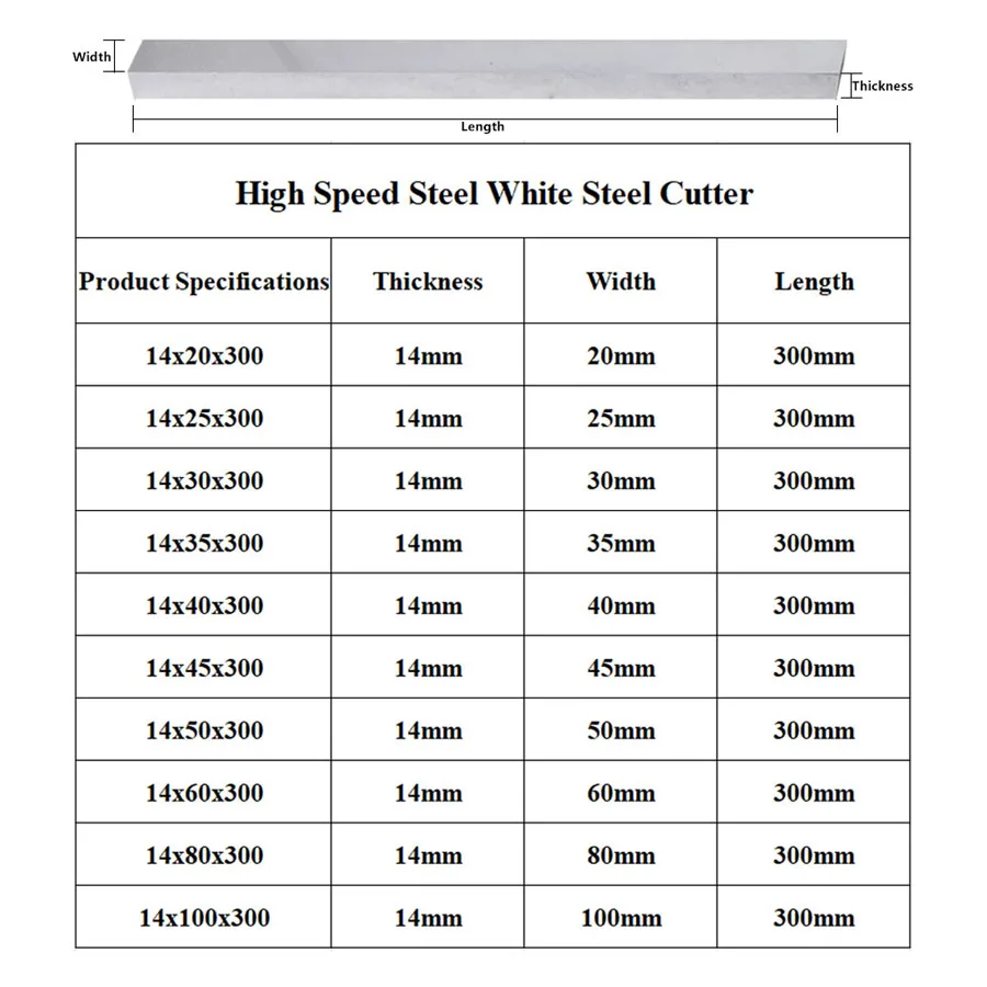 14x20x300 белый стальной токарный инструмент 14x25 30 35 40 45 50 60x300 HSS нож 300 мм высокоскоростной стальной белый стальной стержень 14 мм Чистый лезвие