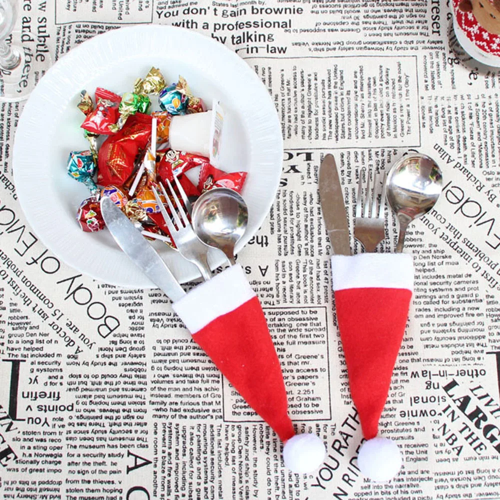 10 шт. красные рождественские шляпы, чехол для ножа и вилки, домашнее рождественское декоративное искусственное украшение, Рождественский инструмент