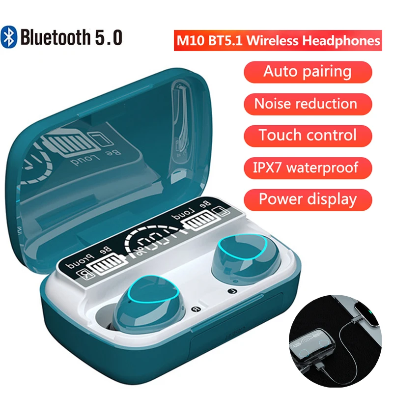 M10 TWS беспроводные наушники Bluetooth музыкальные наушники IPX7 водонепроницаемые спортивные наушники HIFI стерео гарнитура работает на всех смартфонах