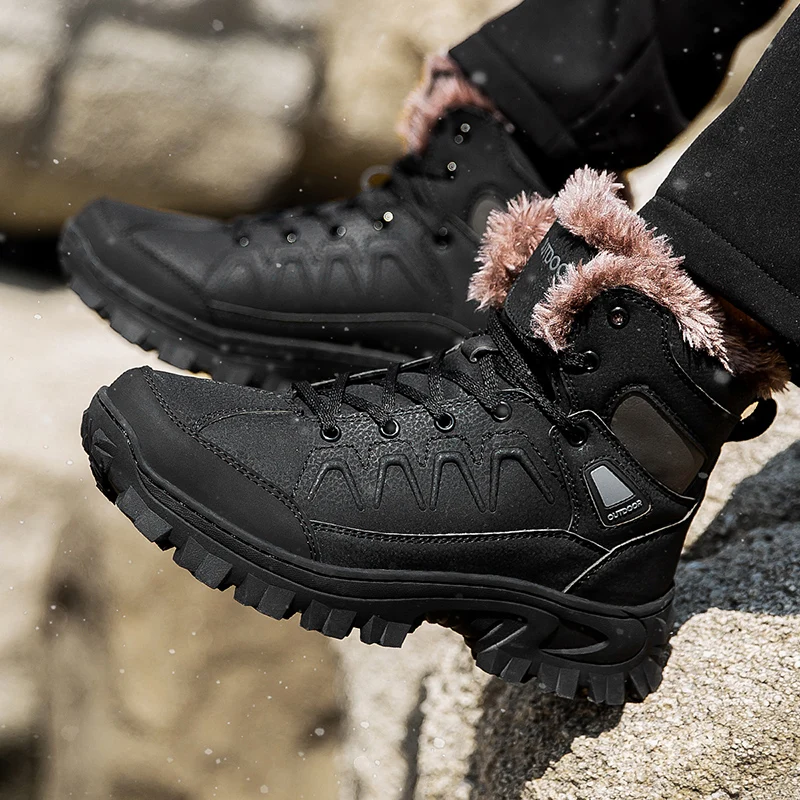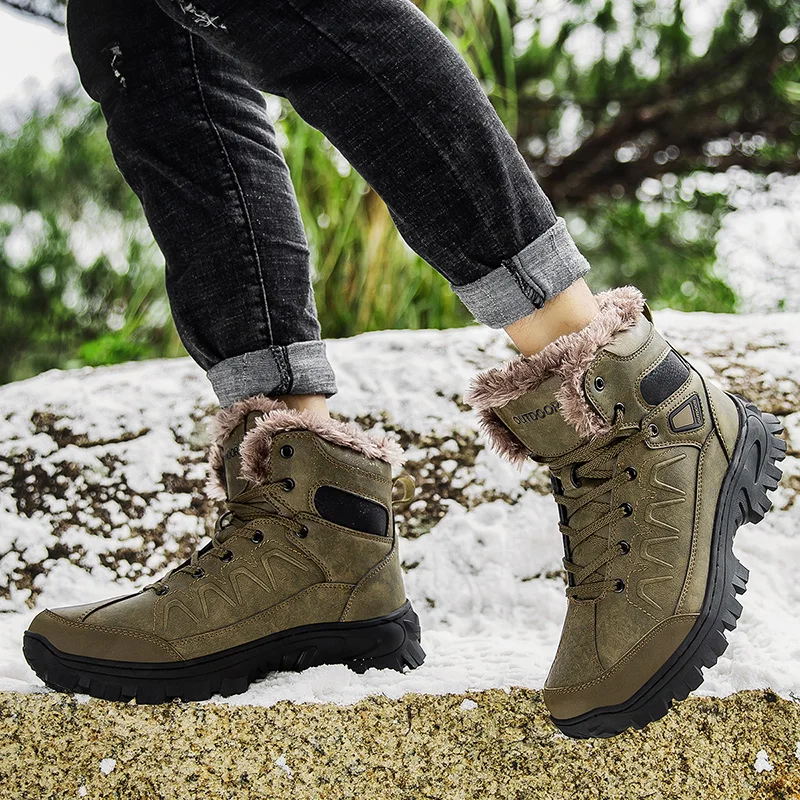 Уличные мужские походные ботинки, зимние мужские теплые плюшевые зимние ботинки, мужские водонепроницаемые ботильоны, кожаная Уличная обувь для треккинга и пешего туризма
