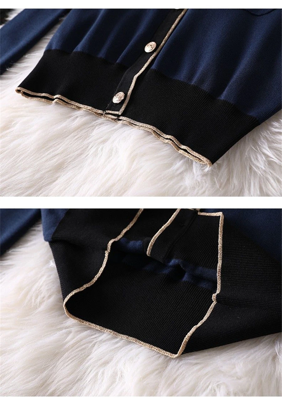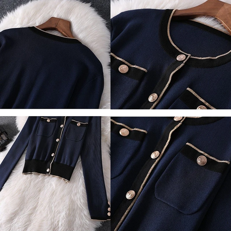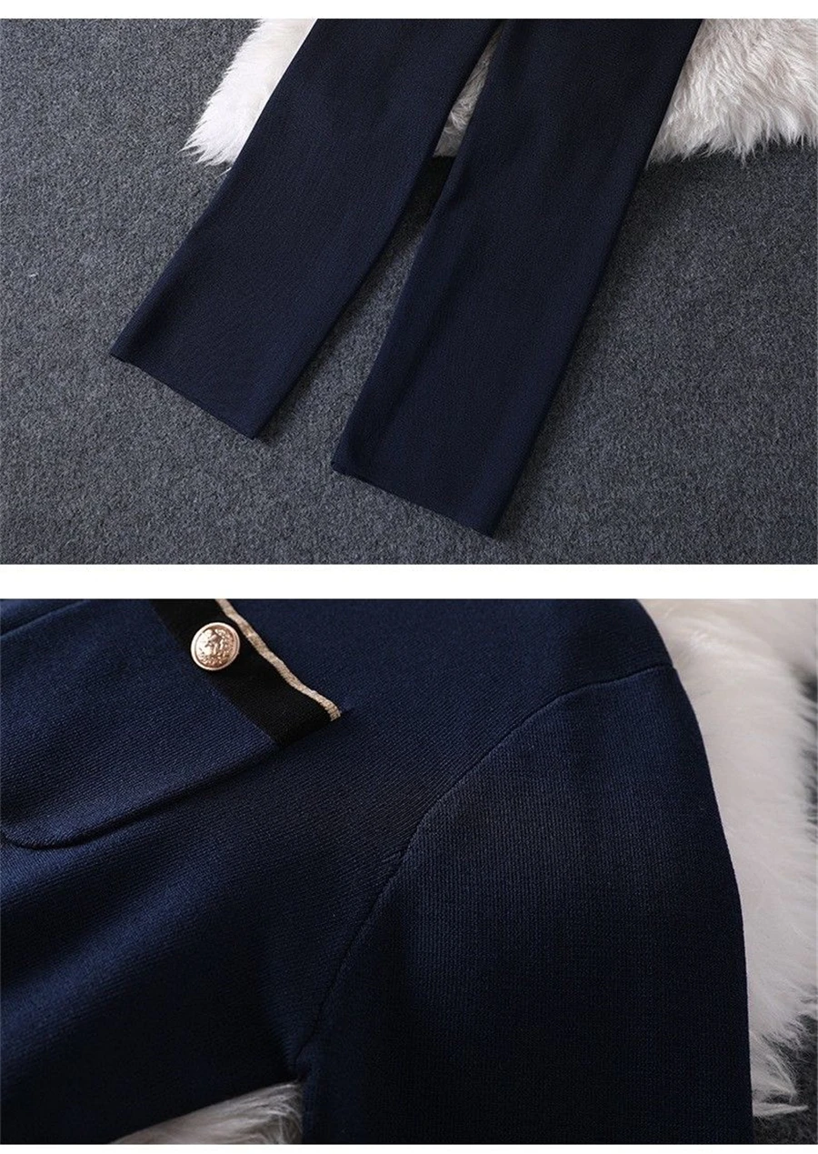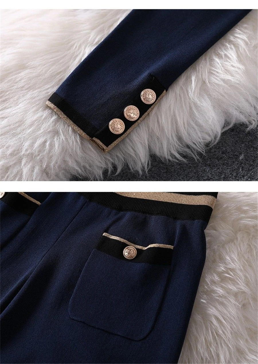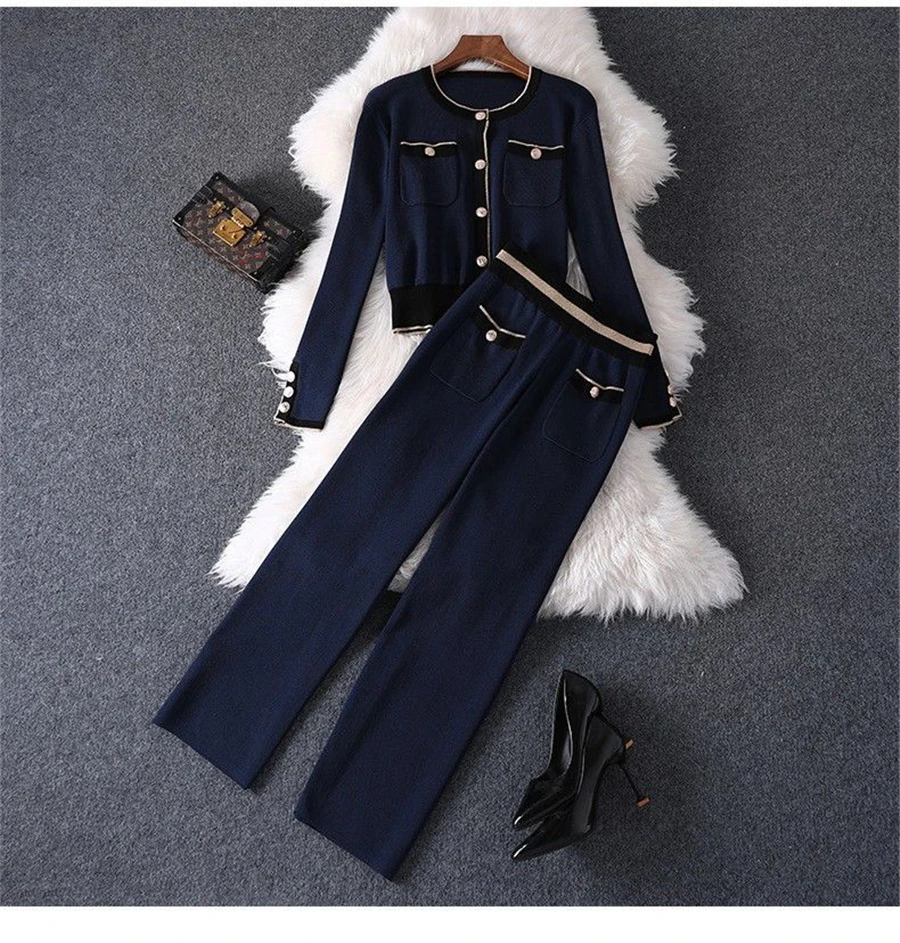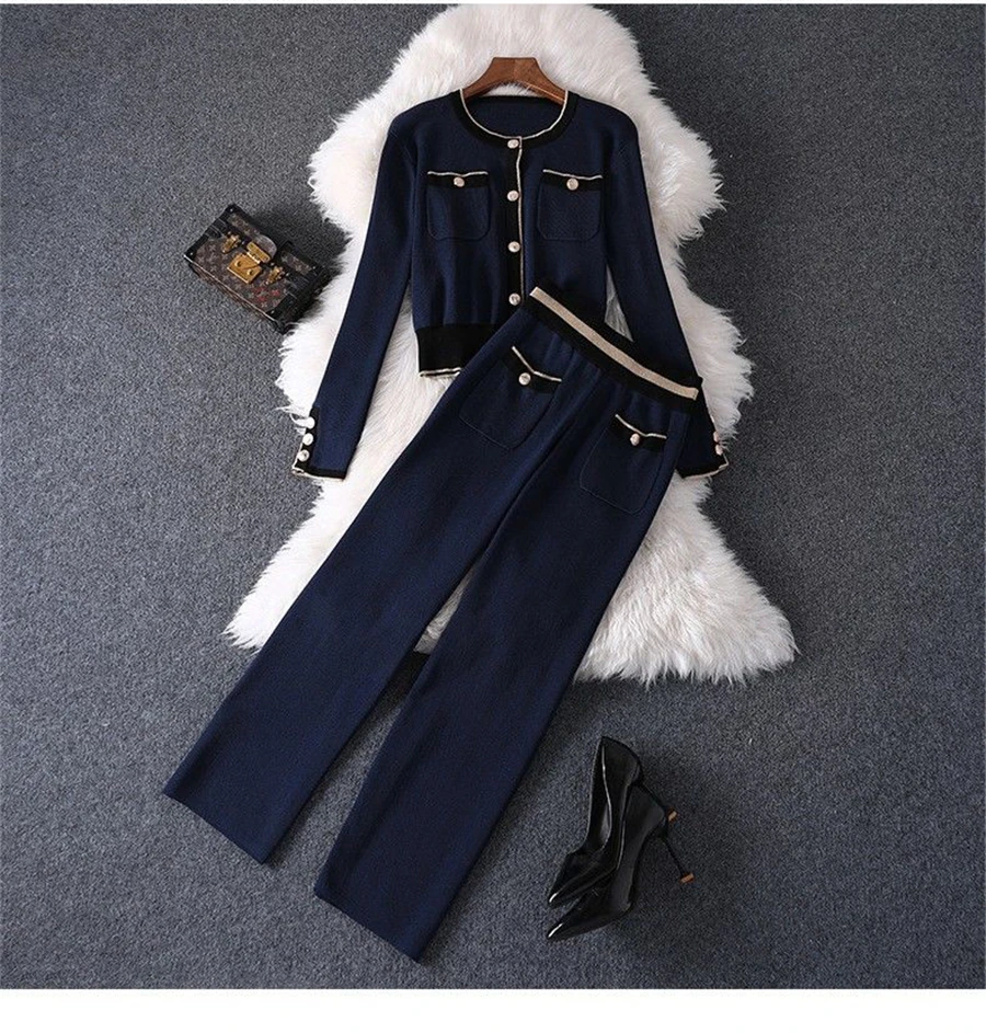 button long sleeve knitted jacket +casual sports 2 peice pantschic knitted sweatpants sets