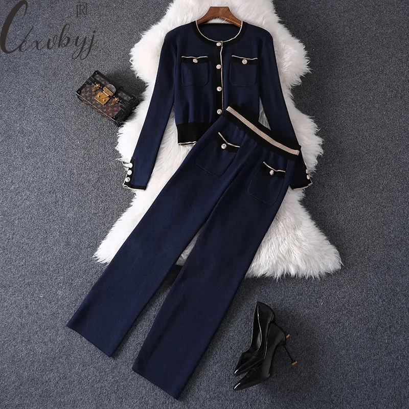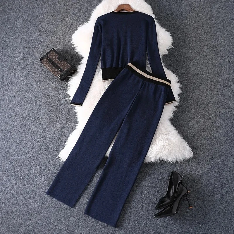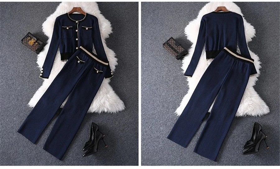 casual wide leg pants 2 peice setsspring autumn o-neck cardigans suits