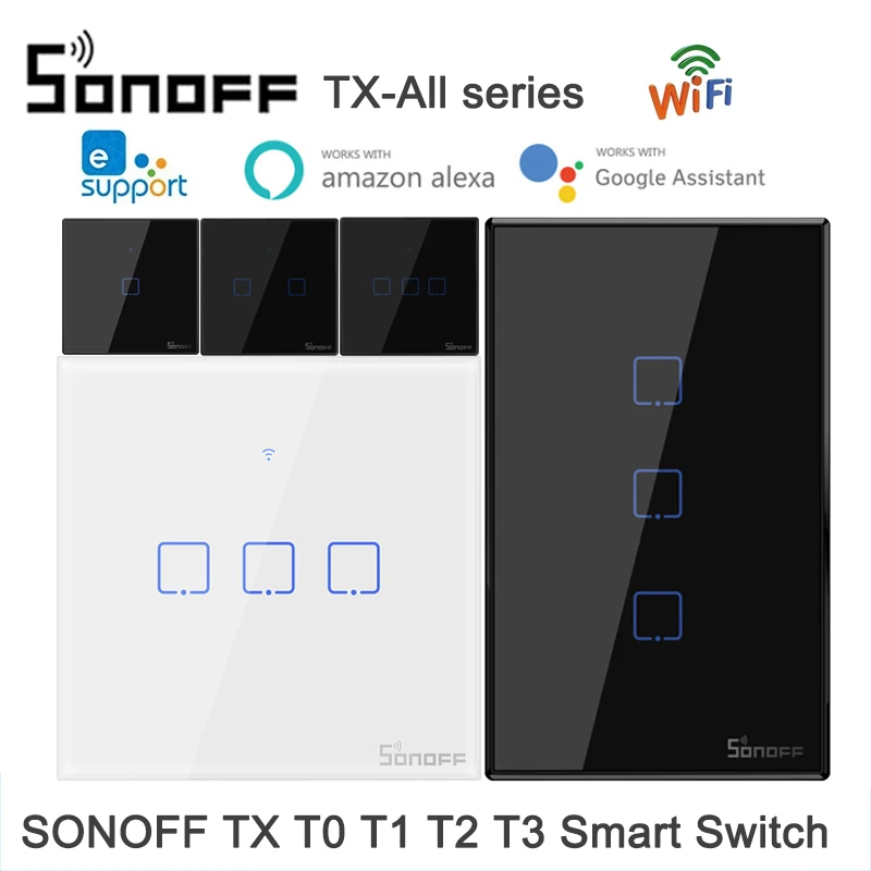 SONOFF T1T2T3T0 WiFi умный выключатель eWelink Умный домашний выключатель TX EUUKUS настенный светильник сенсорный выключатель для Alexa Google Home