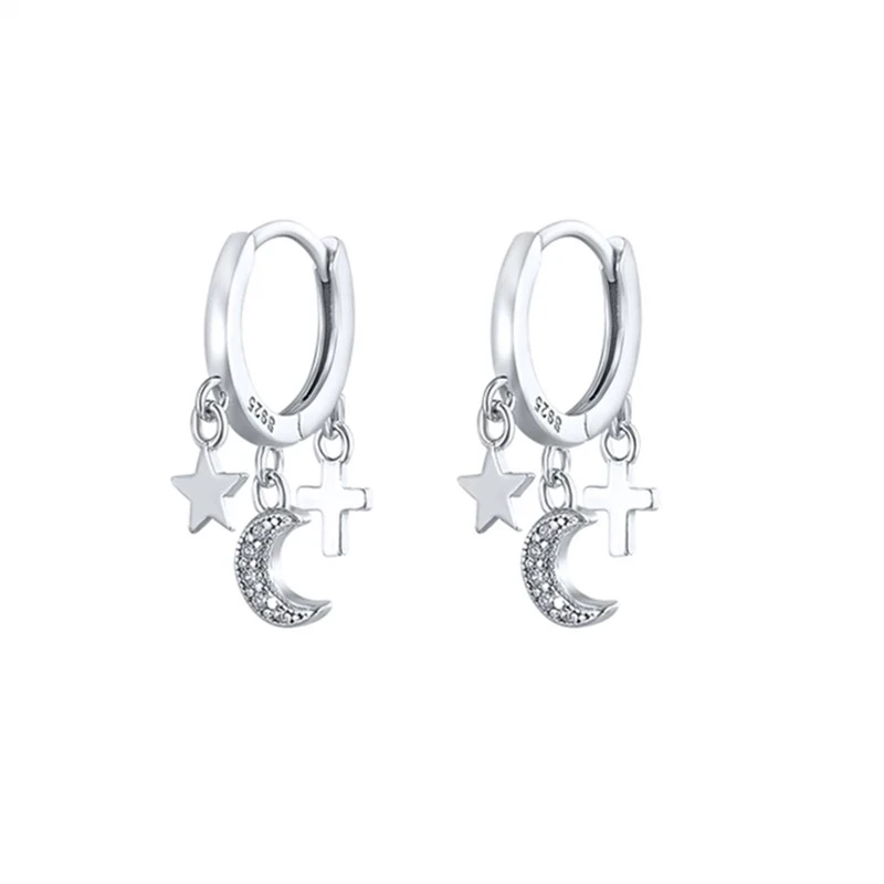 Простые индивидуальные серьги в виде звезды и Луны для женщин, модн...