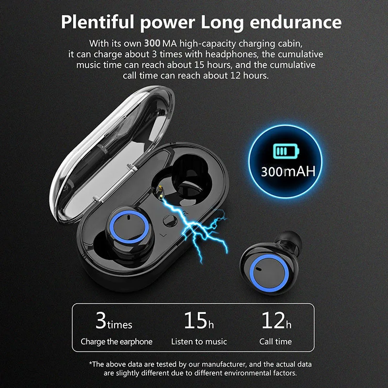 Характеристики продукта:Название продукта: беспроводные наушники W12Версия Bluetooth: 5,0Дальность передачи: 10 мВремя работы в режиме разговора: 3-4 часаВремя прослушивания музыки на наушниках: 3-4 часаВремя зарядки: 1-2 часаВремя зарядки зарядного устройства: 3 разаРабочее напряжение: 3,1-4,2 вЕмкость аккумулятора наушников: 55 мА · чЕмкость зарядного устройства: 230 мА · чПротокол Bluetooth: APD, AVRCP, HSP, HFPОсобенности:1. Беспроводные бинауральные стерео, разделенные левые и правые каналы уха, HIFI звуковой эффект2. Левое и правое уши можно использовать отдельно (моно), и можно использовать в парах (стерео)3. Эргономичный, небольшой размер и легко носить с собой. Выберите автоматическое включение сопряжения, поместите батарейный отсек для автоматического отключения питания и зарядки4. Как левые, так и правые уши имеют встроенные 50 мАч специально настроенные стальные аккумуляторные литиевые батареи6. Время работы от аккумулятора: непрерывное прослушивание музыки в одном ухе и выполнение телефонных звонков до 4-5 часов, непрерывное прослушивание музыки в обоих ушах до 2-3 часов; В режиме ожидания для одного уха в течение 120 часов и в режиме ожидания для обоих ушей в течение 60 часов7. Зарядка: заряжайте с помощью хранения и близкого метода, и быстро заряжайте аккумулятор до 100% в течение 60 минут. Ящик для хранения имеет встроенный аккумулятор емкостью 300 мАч, который можно заряжать непрерывно в течение 3 раз.8. Встроенный микрофон высокой чувствительности (-38 дБ)9. Встроенная технология шумоподавления CVC6.0, обеспечивающая тихий эффект вызова.Упаковочный лист:W12 Наушники * 2Упаковочная коробка * 1Зарядный кабель-1 шт.Инструкция по эксплуатации *