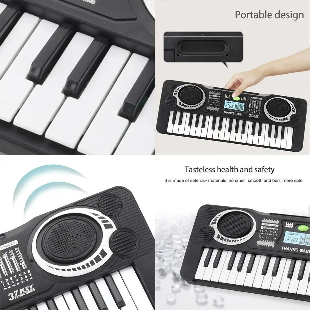 Пункт продажи товара:1. Новые цифровые музыкальные черно-белые 61 клавиши/37 клавиш с гладким дизайном edge Электронные клавиатуры с высококачественным светодиодным дисплеем.2. Цифровое пианино имеет первоклассную функцию 16 видов ударов, 8 видов Записи Звуковых инструментов. 10 видов ритмов, 6 демов также имеют регулируемые ритмы, громкость и источник питания.3,61-ключ/37-ключ для электроргана с несколько режимов воспроизведения-точно так же, как и для частной фортепиано учителя, который способен обрабатывать интерес музыки и потенциал музыки для детей.4. Динамическая музыкальная игрушка для развития чувствительности мозга ребенка. Она адаптируется для игры в помещении или на открытом воздухе с мини-микрофоном.5. Дети могут спеть во время игры, подходит для детей в возрасте от 2 до 5 лет. Высококачественный электрический фортепианный орган-удивительная игрушка, подарок для детей.6. Обратите внимание, что два динамика в этом фортепиано являются модными динамиками.Спецификация продукта:Название продукта: детский электронный органЦвет: черный/розовый (на выбор)Материал: пластик и электронные компонентыРазмер:61 Ключ: 54*17*5 см/21,3*6,7*2,0 дюйма37-клавиша: 35*13*4 см/13,8*5,1*1,6 дюймовВес:61 Ключ: 850 г/1,87 фунтов37-ключ: 400g/0,88 lbПосылка включает в себя (зависит от вашего выбора):61 Ключ1 x Электронный фортепианный орган1 x Микрофон1 зарядное устройство USBИли37-ключ1 x Электронный фортепианный органТребуется 3 аккумулятора 2 А, но батарейки в комплект не входят!Примечание:1. Замеры сделаны вручную, поэтому возможны отклонения на 1-2 см.2. В связи с использованием разных по светильник и Экран разница товар точно такой же, как это Цвет может быть S светильник ly отличается из-за характеристик монитора компьютера.3. Батарейки в комплект не входят!Гарантия обслуживания:Если у вас есть какие-либо вопросы о нашей продукции, пожалуйста, свяжитесь с нами, мы предоставим Вам качественные услуги и лучшие решения.