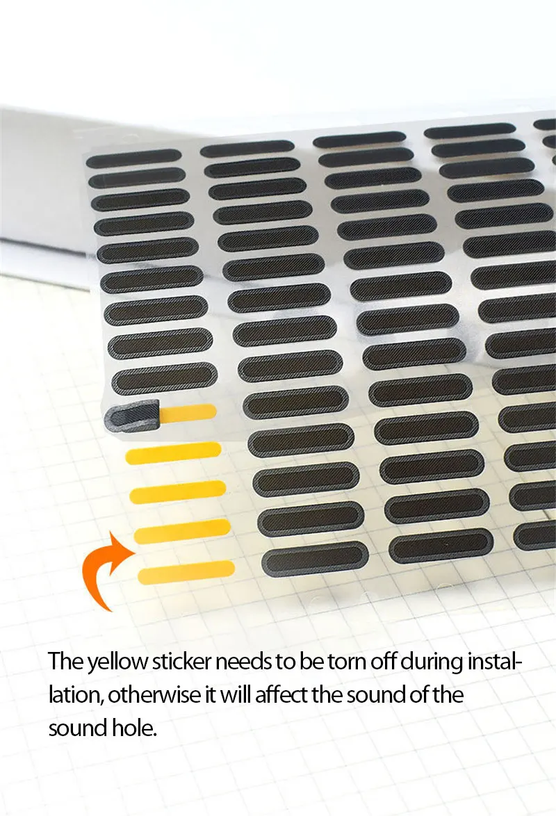 Долгосрочное использование мобильный телефон вызывает большое количество пыли для входа в отверстие громкости, которое трудно очистить и влияет на нормальное использование мобильный телефон. Используйте мобильный телефон, пылезащитный сетчатый стикер, чтобы устранить пыль на рту колокольчика и держать вдали от проблем с накоплением пыли.