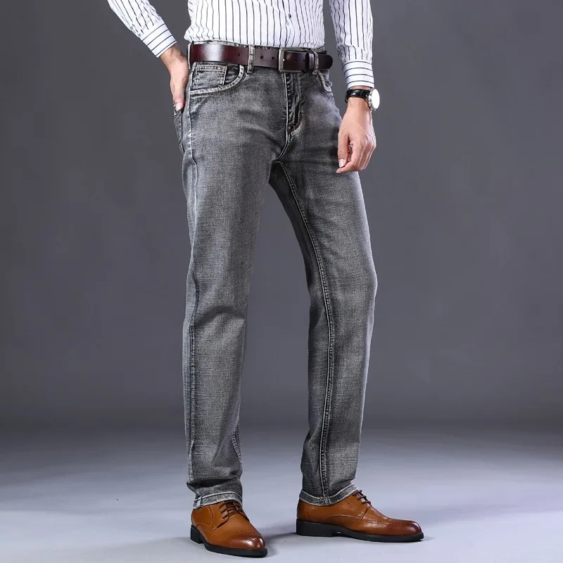 Мужские облегающие джинсы, эластичные серые джинсы для отдыха, брен...