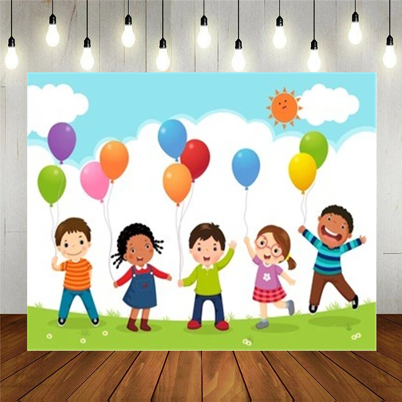 Реквизит для фотостудии Виниловый фон для фотосъемки украшение для вечеринки в честь Дня Рождения Мультяшные Детские прыжки с воздушными шарами