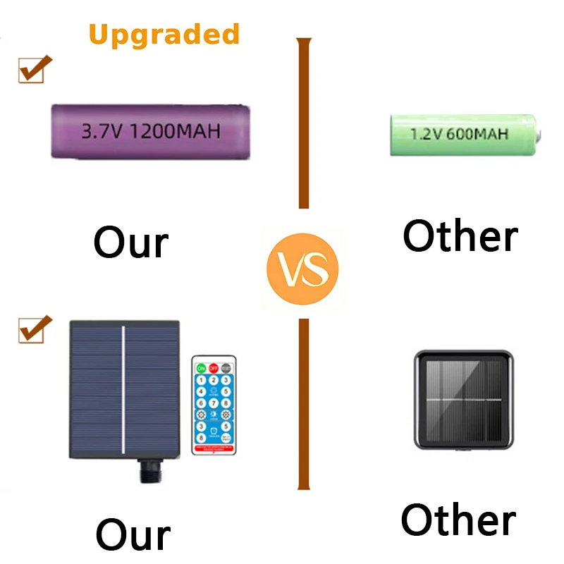 1. Солнечные наружные гирлянды изготовлены из высококачественной медной проволоки и укрепляют медную проволоку с помощью ПВХ для защиты медной проволоки от повреждений. Более гибкие, гибкие, вы можете сделать своими руками любую форму, которая вам нравится.Аккумулятор большой емкости 2,1200 мАч и солнечная панель большого размера могут получать больше солнечного света. Поместите солнечную панель, где солнечный свет может получить наиболее прямой. Он может работать до 8-12 часов после полной зарядки (8 часов). Встроенный светильник контролирует солнечный светильник с автоматическим включением в темноте и автоматическим выключением в дневное время. Солнечная панель не может быть подвержена воздействию на другой светильник ночью, в противном случае светильник может не включаться. После включения, может автоматически контролировать светильник и зарядку.3. Обновленная версия дистанционного управления 】с пультом дистанционного управления, вам не нужно идти в место, где солнечная панель, чтобы изменить режим. С пультом дистанционного управления вы можете установить 3/5/8 часов включения и настроить яркость, как вам нравится.4. Наша Солнечная струнная лампа с 8 режимами освещения. Скачок, выцветание, вспышка белого цвета, погоня, устойчивый, вспышка, волна, Переключение режима светильник, который вам нравится в любое время.