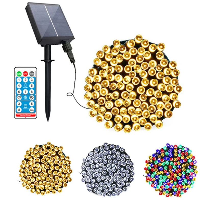 Уличная Водонепроницаемая Рождественская гирлянда на солнечной батарее, s освещение, сказосветильник ильник, 22 м, 200 светодиодов, 8 режимов, с дистанционным управлением, для свадьбы, вечеринки, праздника