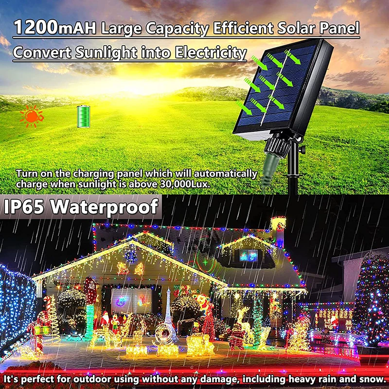 Материал: ПВХ и медные провода.Водонепроницаемость: IP 67Источник питания: на солнечной энергииЦвет излучения: разноцветный, теплый белый, белыйСветильник режим: 8 режимовСолнечная спецификация: 4,5 V/250MA поликристаллического кремнияБатарея Емкость: 18650 литиевая батарея Батарея, 3,7 V/1200MAHРазмер солнечной версии: 10 см * 8 смПовод: праздничные сказочные огни отлично подходят для украшения, Рождества, фестиваля, праздника, вечерние, церемонии и многих других праздничных мероприятий. Широко используется для декоративной внутренней и наружной отделки. Это отлично подходит для вашего двора, украшения сада. Вы также можете повесить его на дерево, Виноградную лозу, крышу крыльца, окно спальни, балкон, патио, стену.