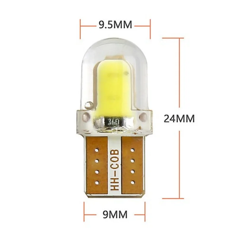 Светодиодные автомобильные лампы W5W T10, 194, 168, COB 8SMD, для стояночных огней и подсветки номерного знака, лампы с клиновидным цоколем, CANBUS, прозрачные, белые, 10 шт. Описание: Состояние на 100% абсолютно новый и высокое качество! Более быстрый отклик при включении/выключении 8 чипов COB ярче, чем обычно. Дизайн с углом луча 360 ° светильник ить каждый угол. Высокоэффективное освещение. Длительный срок службы, низкое энергопотребление, энергосбережение Простая установка, прямая замена, проводка не требуется Спецификация: Тип разъема: T10 Ток: 50 мА Люмен: 80 лм Напряжение: 12 В постоянного тока Мощность: 3 Вт Размер: 9*9,5*20 мм Установка: -Подходит для большинства моделей автомобилей с разъемом T10 / T15 / 194 / 168 / 158 / 12256 / 12961 / 2821/W5W. -Также совместим с разъемами 921 / 912 / 516 / 579 / 917 / 918 / 920 / 922 / 923 / 906 / 904 / 916. Применение: Автомобильный купол и светильник света, светильник Тель поворота s, боковые габаритные огни s, светильник борная панель свет s, дверсветильник лицензионный светильник s, карта свет s и так далее