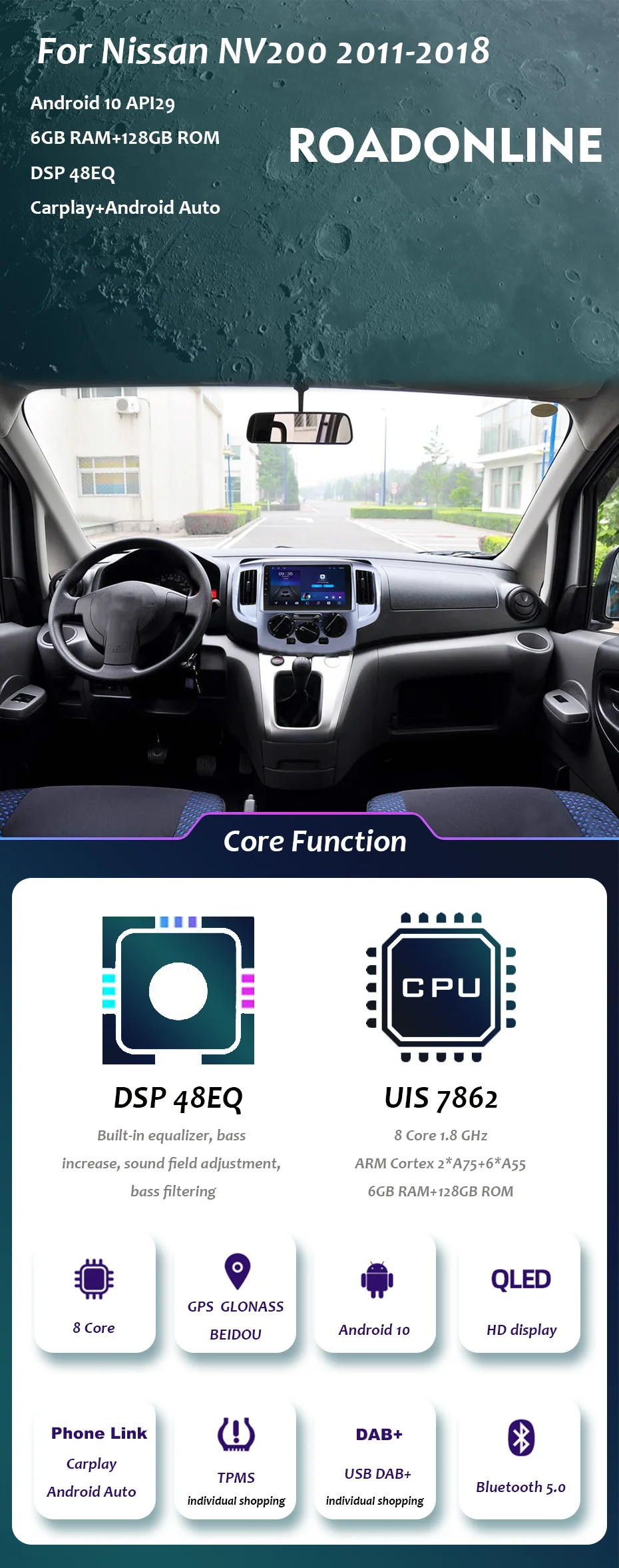 Автомагнитола Android 10 для NISSAN NV200 2009-2018, 9-дюймовый экран, навигация, мультимедийный плеер, автомагнитола, радио, Gps