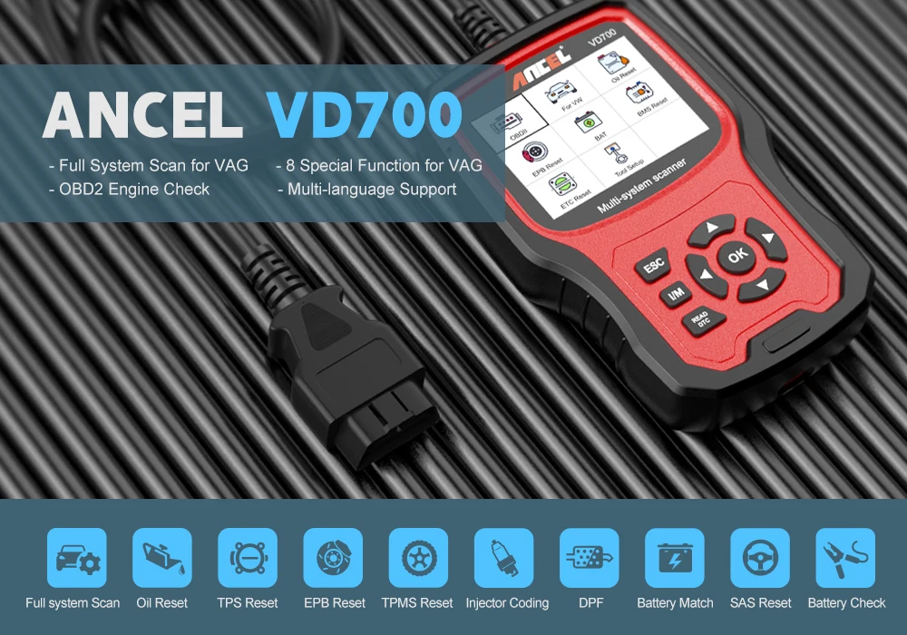 Профессиональный OBD2 сканер ANCEL VD700 для VAG автомобильный диагностический инструмент DPF SRS TPMS сброс масла полная система Диагностика автомобиля бесплатное обновление