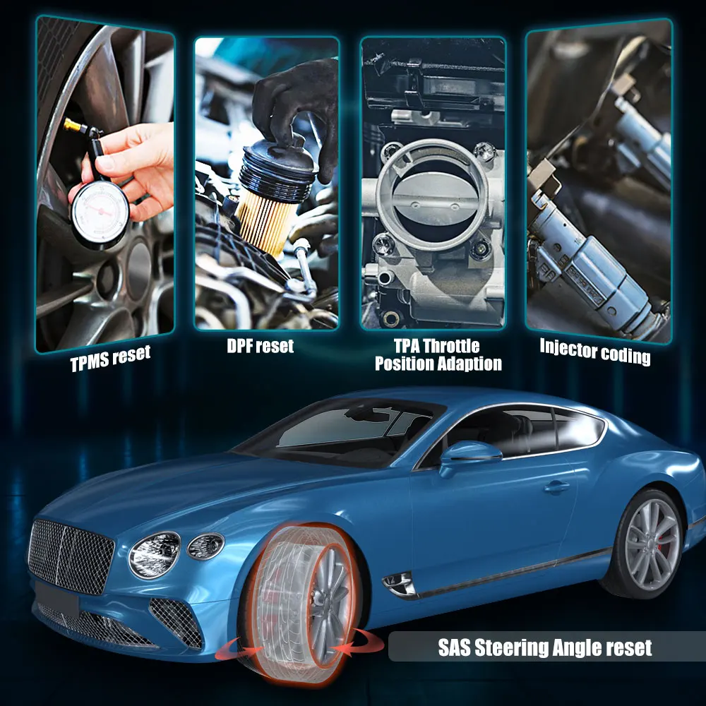 (1) сброс масла(2) Адаптация положения дроссельной заслонки TPA(3) Сброс тормозных колодок EPB(4) Сброс угла рулевого управления SAS(5) Сброс TPMS(6) Сброс DPF(7) соответствие батареи(8) Кодирование инжектора