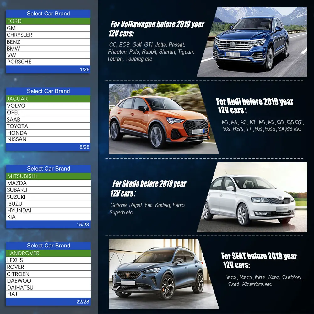 1. Легковом автомобиле OBD2/EOBD (система бортовой диагностики полная система диагностический сканер для 12V 16pin VW, Audi, Skoda,Seat,Bugatti,Lamborghini,Bentley автомобилей2. Проверьте все условия работы системы, чтение, четкие коды ошибок, выключите светильник MIL; Поддержка сброса обслуживания автомобильного масла, сброс тормозных колодок EPB, Проверка положения дроссельной заслонки и т. д.3. Подключи и работай, быстрое сканирование4. Бесплатное онлайн обновление5. Доступны различные языки:Английский, французский, испанский, немецкий, русский, шведский, португальский, финский, норвежский, датский6. Три года гарантии