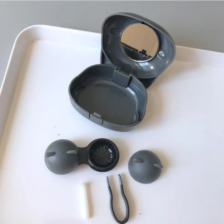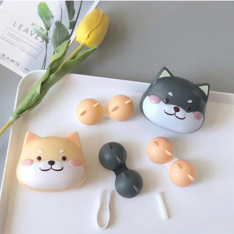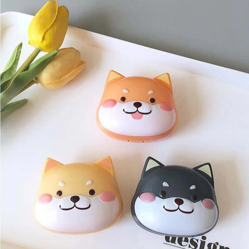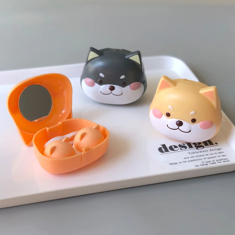 Мини-чехол для контактных линз с милой собакой, дорожный набор, пластиковый контейнер для хранения линз с зеркалом, дорожный контейнер, бокс для контактных телефонов