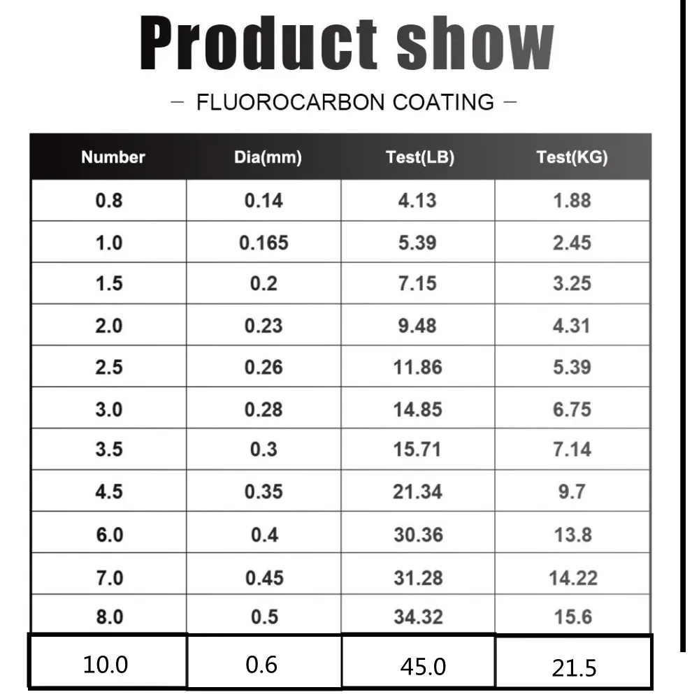 Номер лески: 0,8; 1,0; 1,5; 2,0; 2,5; 3,0; 4,5; 6,0; 7,0; 8,0