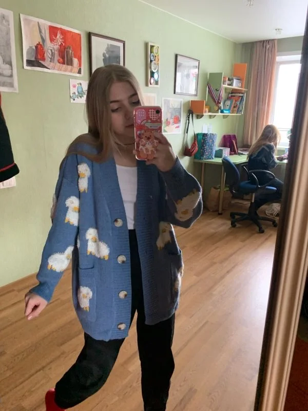 Осенняя женская обувь кардиган 2021 на весну и зиму, новые вязанные Femme свободный свитер пальто стильная футболка с изображением персонажей видеоигр с принтом "овечки" VeNeck; Милая Женская куртка