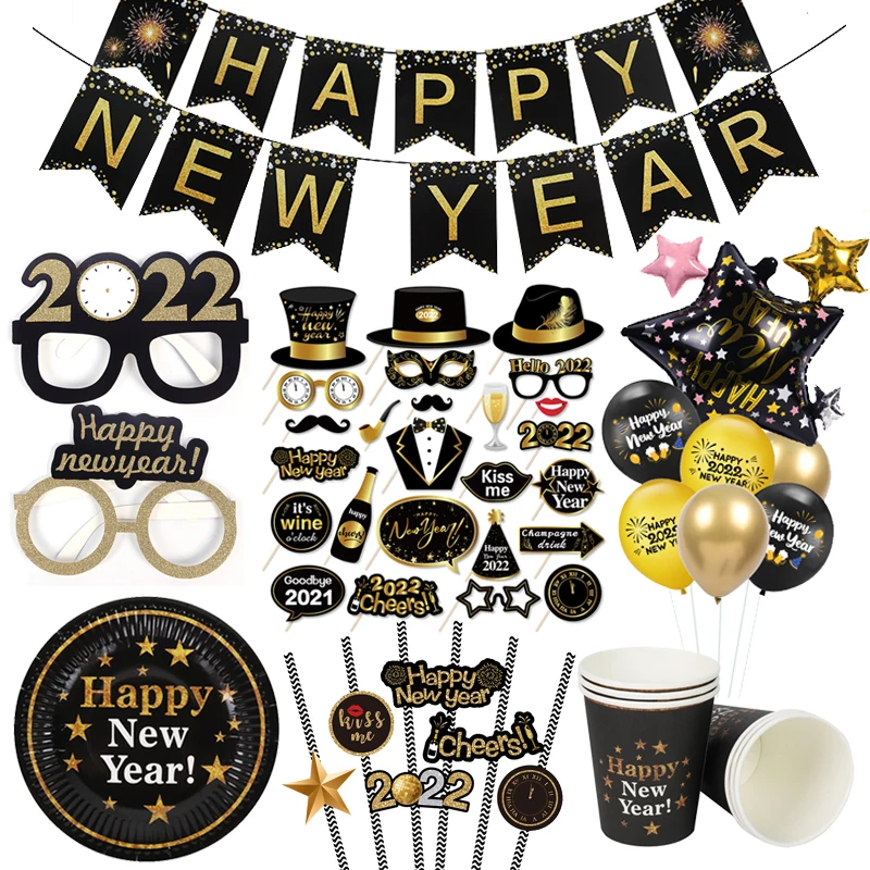 Новогодний декоративный баннер 2022, гирлянда, воздушные шары, столовая посуда, фоторамка, реквизит, Новогодняя вечеринка, Рождество, украшение для дома