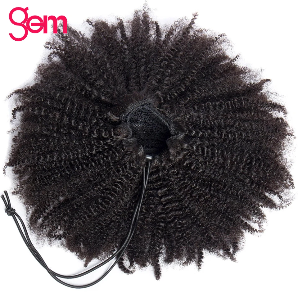 Бразильские накладные человеческие волосы 10-24 дюйма с длинным зажимом для конского хвоста Mogolian афро кудрявые накладные волосы для конского хвоста Remy