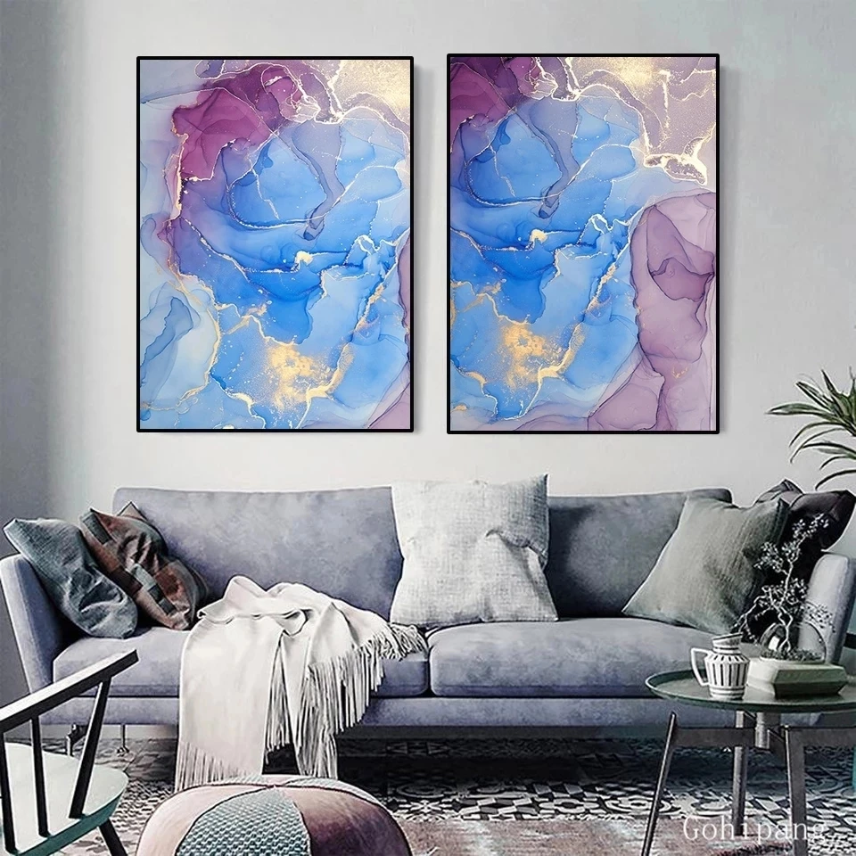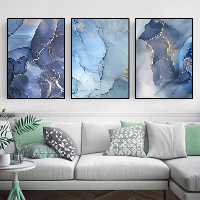 Абстрактная синяя Золотая Картина на холсте Современные плакаты и п...