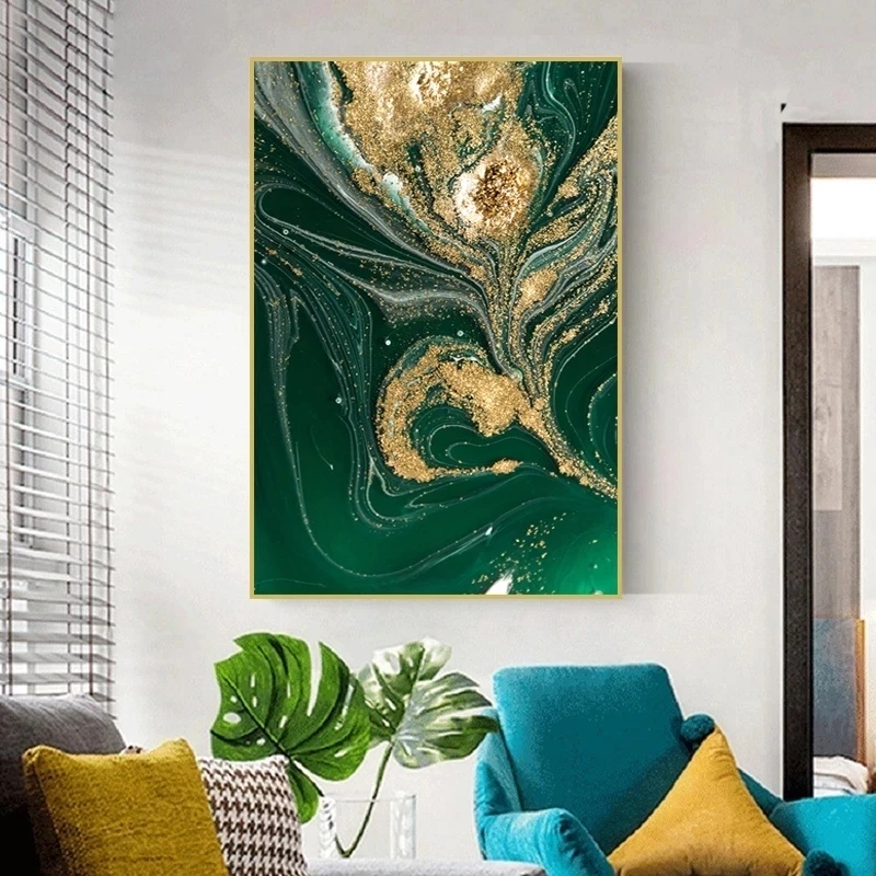 Картина большого размера на холсте, настенная живопись с золотым де...