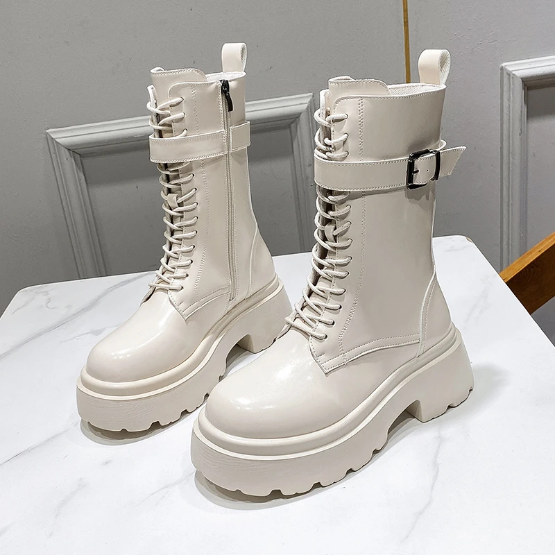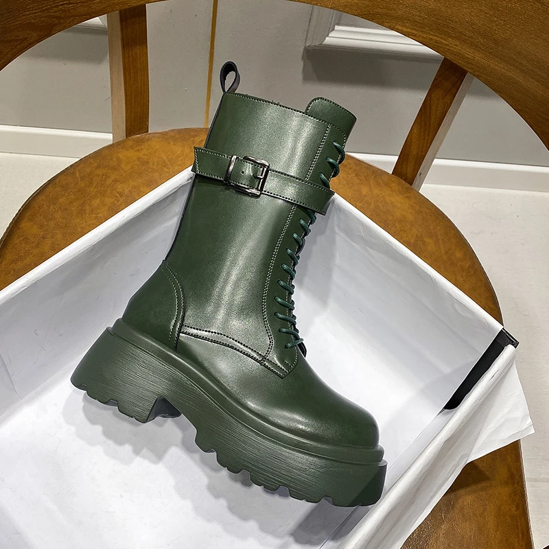 Женские ботильоны на массивной платформе, зеленые кожаные ботинки в готическом стиле, байкерские ботинки, Осень-зима 2021